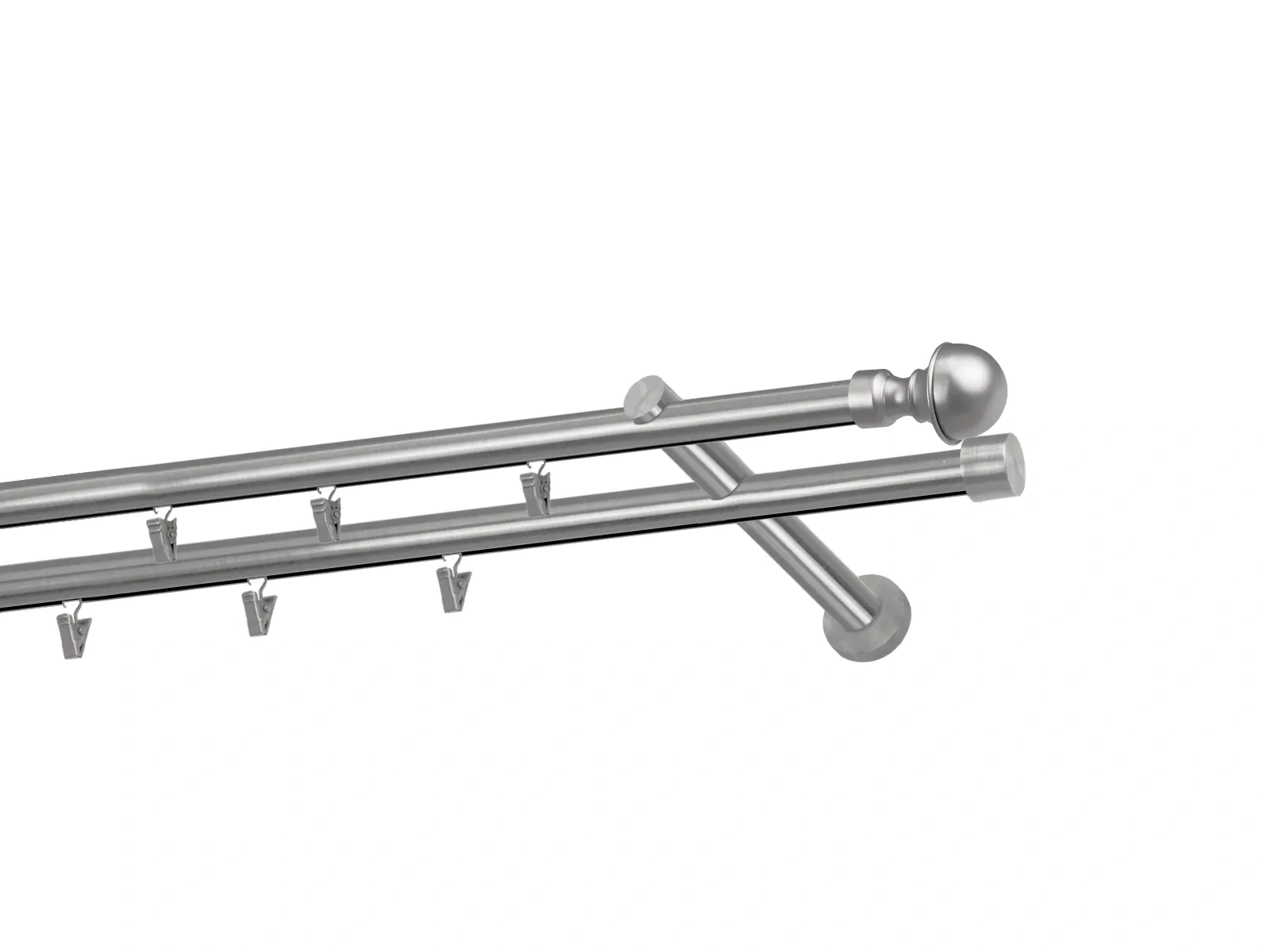 Dvojradová garniža s povrchovou úpravou - odtieň satin-nikel (matné striebro). Celokovové garniže s kvalitnou povrchovou úpravou - galvanické pokovovanie. Galvanické pokovovanie zabezpečuje vyššiu povrchovú tvrdosť, zvýšenú dolnosť voči poškriabaniu, hladký povrch. Dodávané sú v kompletoch.