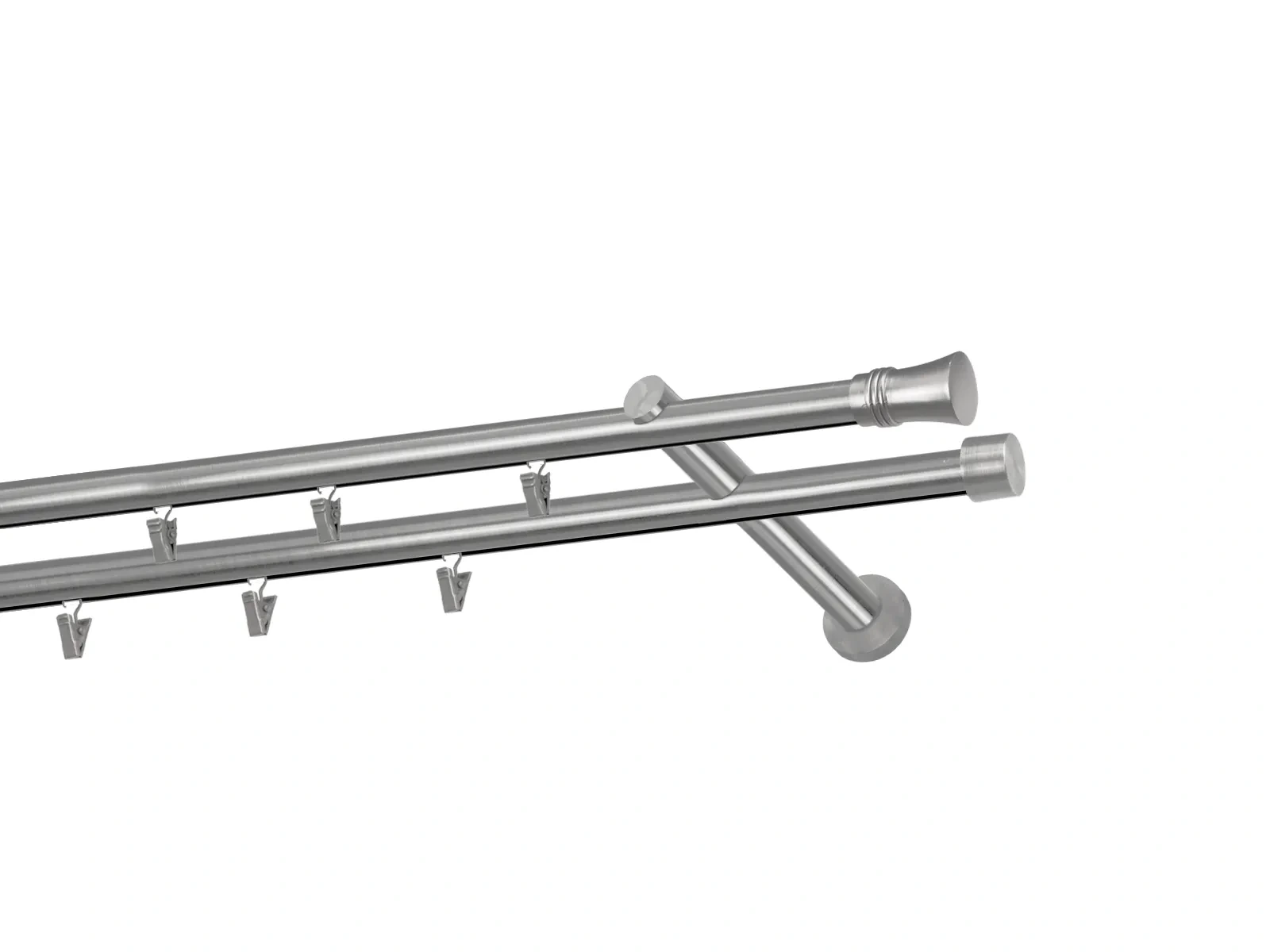 Dvojradová garniža s povrchovou úpravou - odtieň satin-nikel (matné striebro). Celokovové garniže s kvalitnou povrchovou úpravou - galvanické pokovovanie. Galvanické pokovovanie zabezpečuje vyššiu povrchovú tvrdosť, zvýšenú dolnosť voči poškriabaniu, hladký povrch. Dodávané sú v kompletoch.