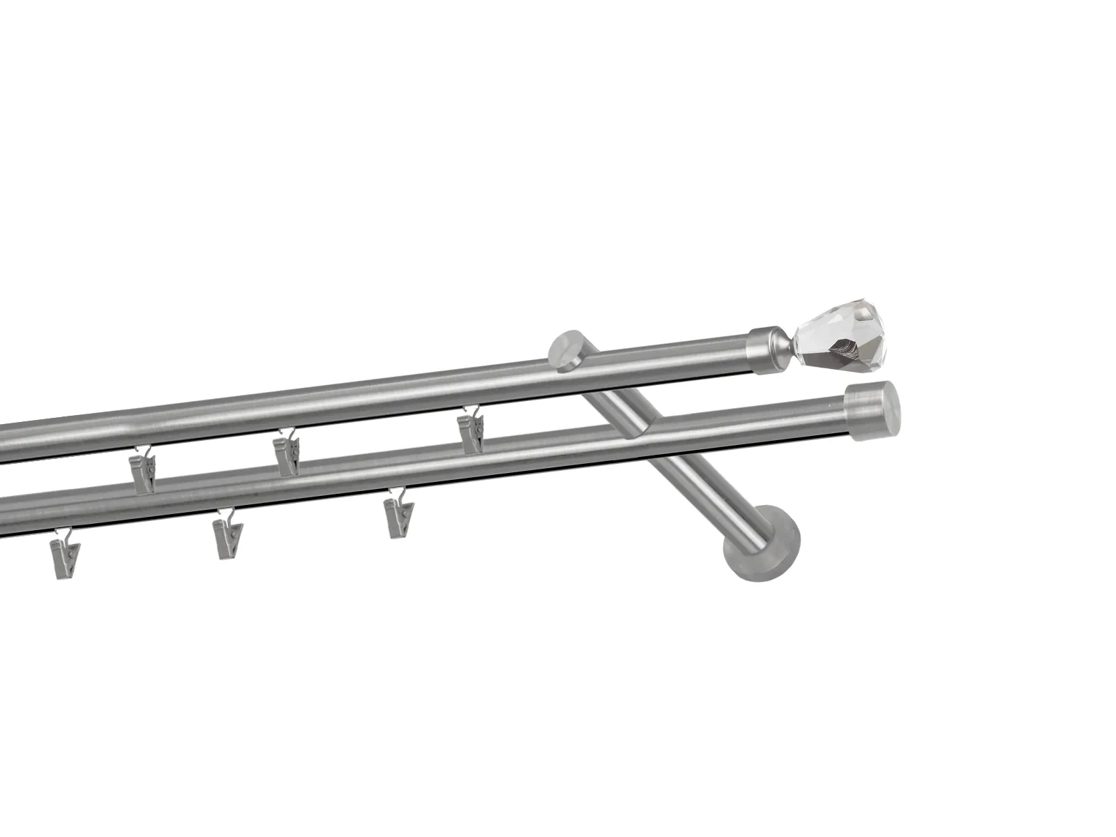 Dvojradová garniža s povrchovou úpravou - odtieň satin-nikel (matné striebro). Celokovové garniže s kvalitnou povrchovou úpravou - galvanické pokovovanie. Galvanické pokovovanie zabezpečuje vyššiu povrchovú tvrdosť, zvýšenú dolnosť voči poškriabaniu, hladký povrch. Dodávané sú v kompletoch.