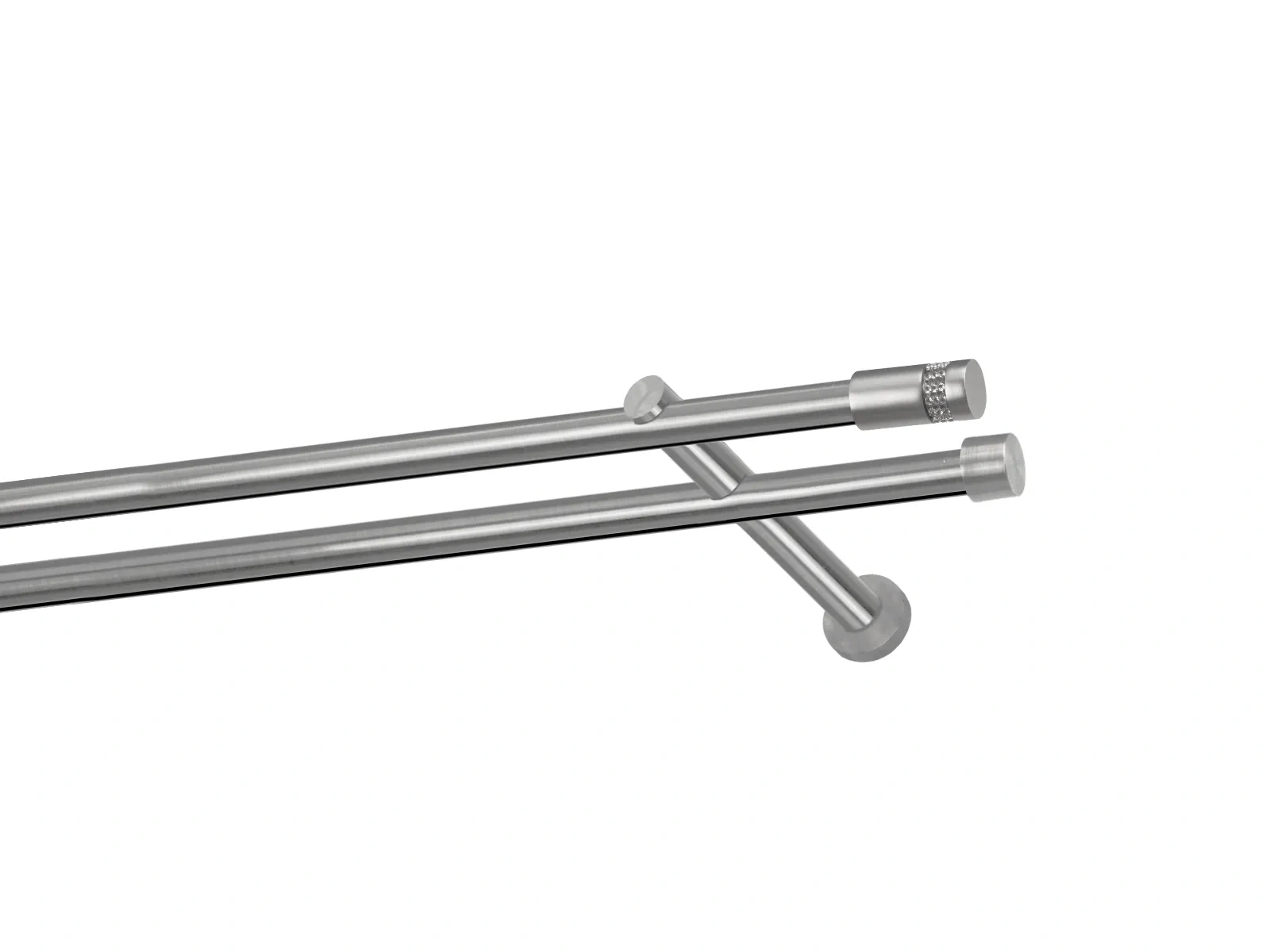 Dvojradová garniža s povrchovou úpravou - odtieň satin-nikel (matné striebro). Celokovové garniže s kvalitnou povrchovou úpravou - galvanické pokovovanie. Galvanické pokovovanie zabezpečuje vyššiu povrchovú tvrdosť, zvýšenú dolnosť voči poškriabaniu, hladký povrch. Dodávané sú v kompletoch.