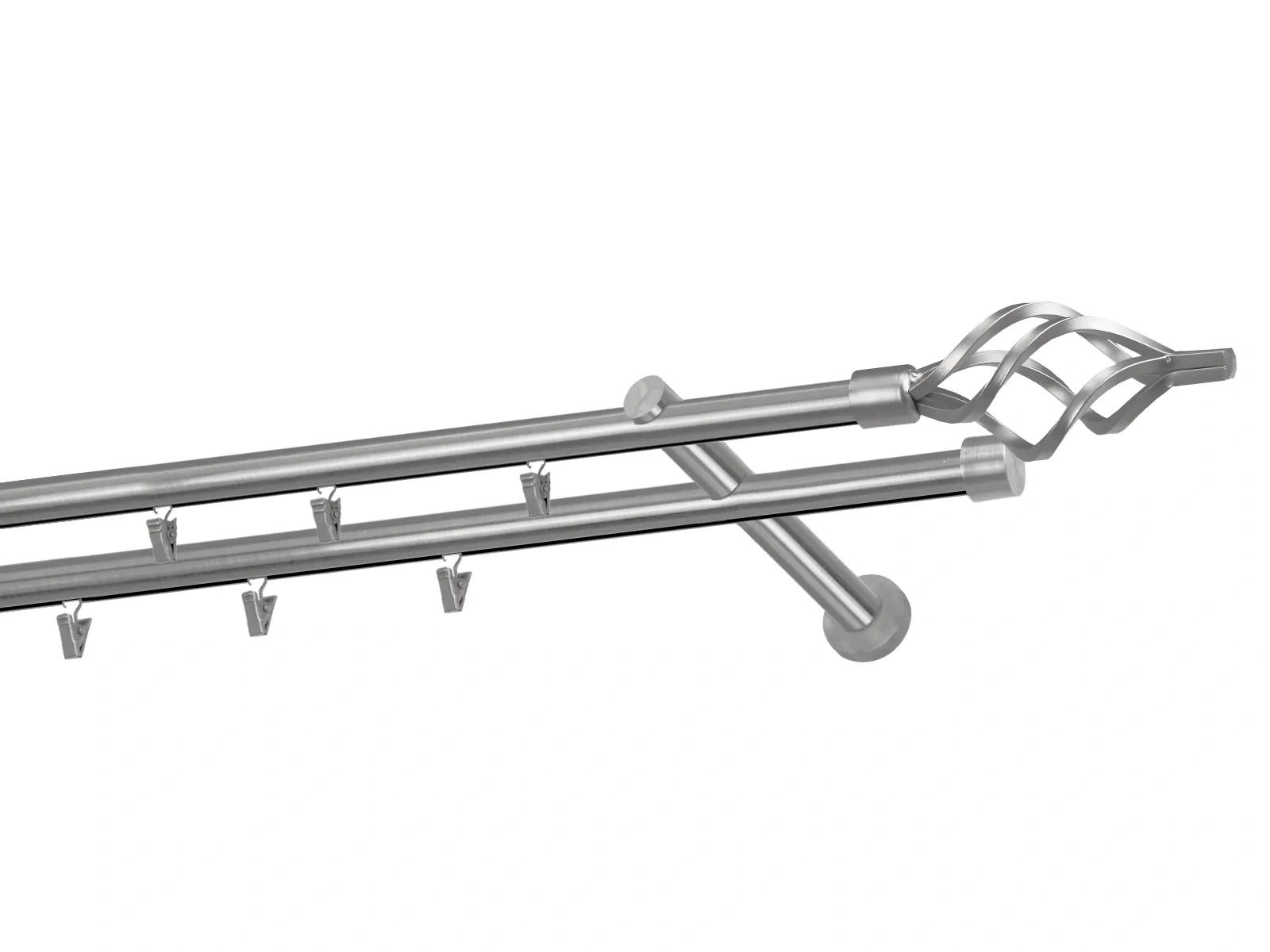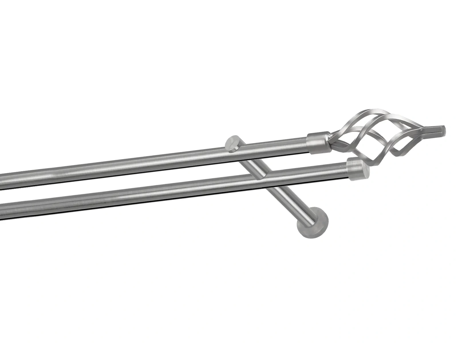 Dvojradová garniža s povrchovou úpravou - odtieň satin-nikel (matné striebro). Celokovové garniže s kvalitnou povrchovou úpravou - galvanické pokovovanie. Galvanické pokovovanie zabezpečuje vyššiu povrchovú tvrdosť, zvýšenú dolnosť voči poškriabaniu, hladký povrch. Dodávané sú v kompletoch.