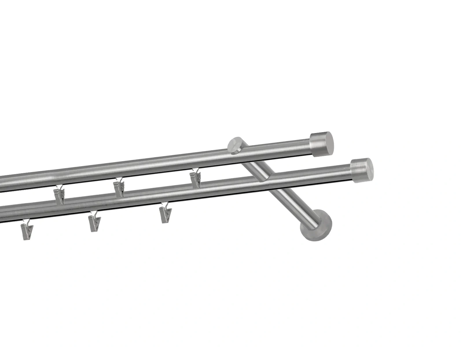 Dvojradová garniža s povrchovou úpravou - odtieň satin-nikel (matné striebro). Celokovové garniže s kvalitnou povrchovou úpravou - galvanické pokovovanie. Galvanické pokovovanie zabezpečuje vyššiu povrchovú tvrdosť, zvýšenú dolnosť voči poškriabaniu, hladký povrch. Dodávané sú v kompletoch.