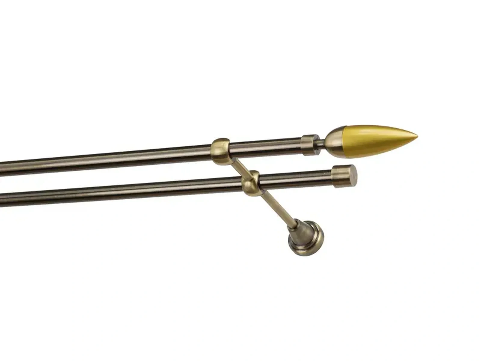 Dvojradová garniža s povrchovou úpravou - odtieň antik (matné zlato). Celokovové garniže s kvalitnou povrchovou úpravou - galvanické pokovovanie. Galvanické pokovovanie zabezpečuje vyššiu povrchovú tvrdosť, zvýšenú dolnosť voči poškriabaniu, hladký povrch. Dodávané sú v kompletoch.