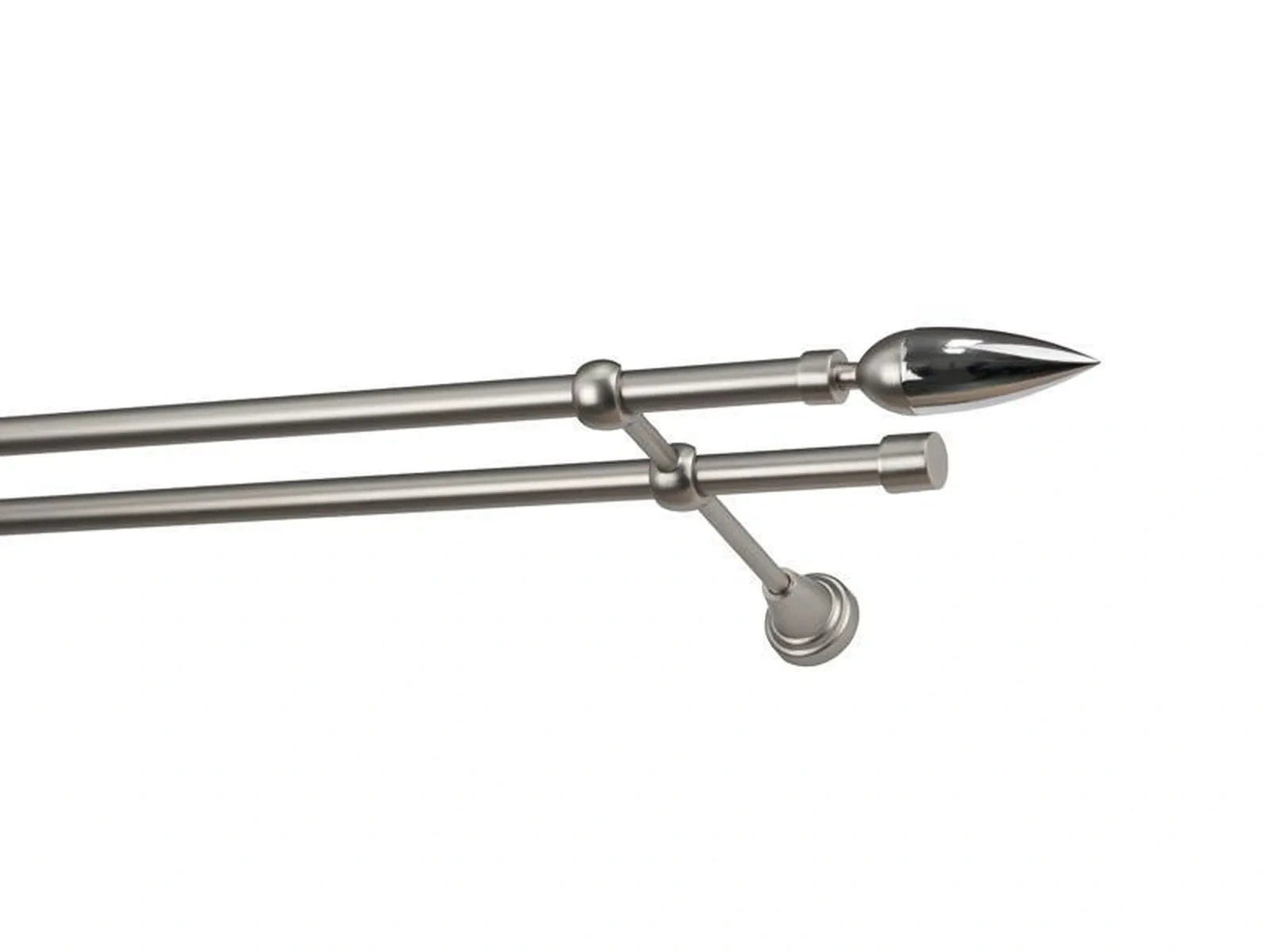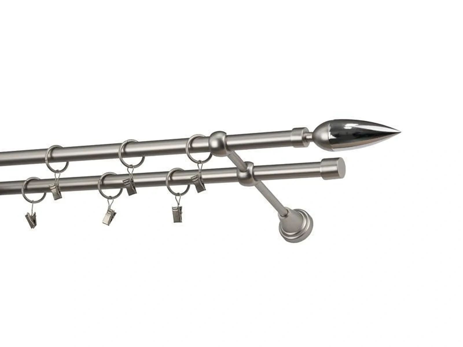 Dvojradová garniža s povrchovou úpravou - odtieň satin-nikel (matné striebro). Celokovové garniže s kvalitnou povrchovou úpravou - galvanické pokovovanie. Galvanické pokovovanie zabezpečuje vyššiu povrchovú tvrdosť, zvýšenú dolnosť voči poškriabaniu, hladký povrch. Dodávané sú v kompletoch.