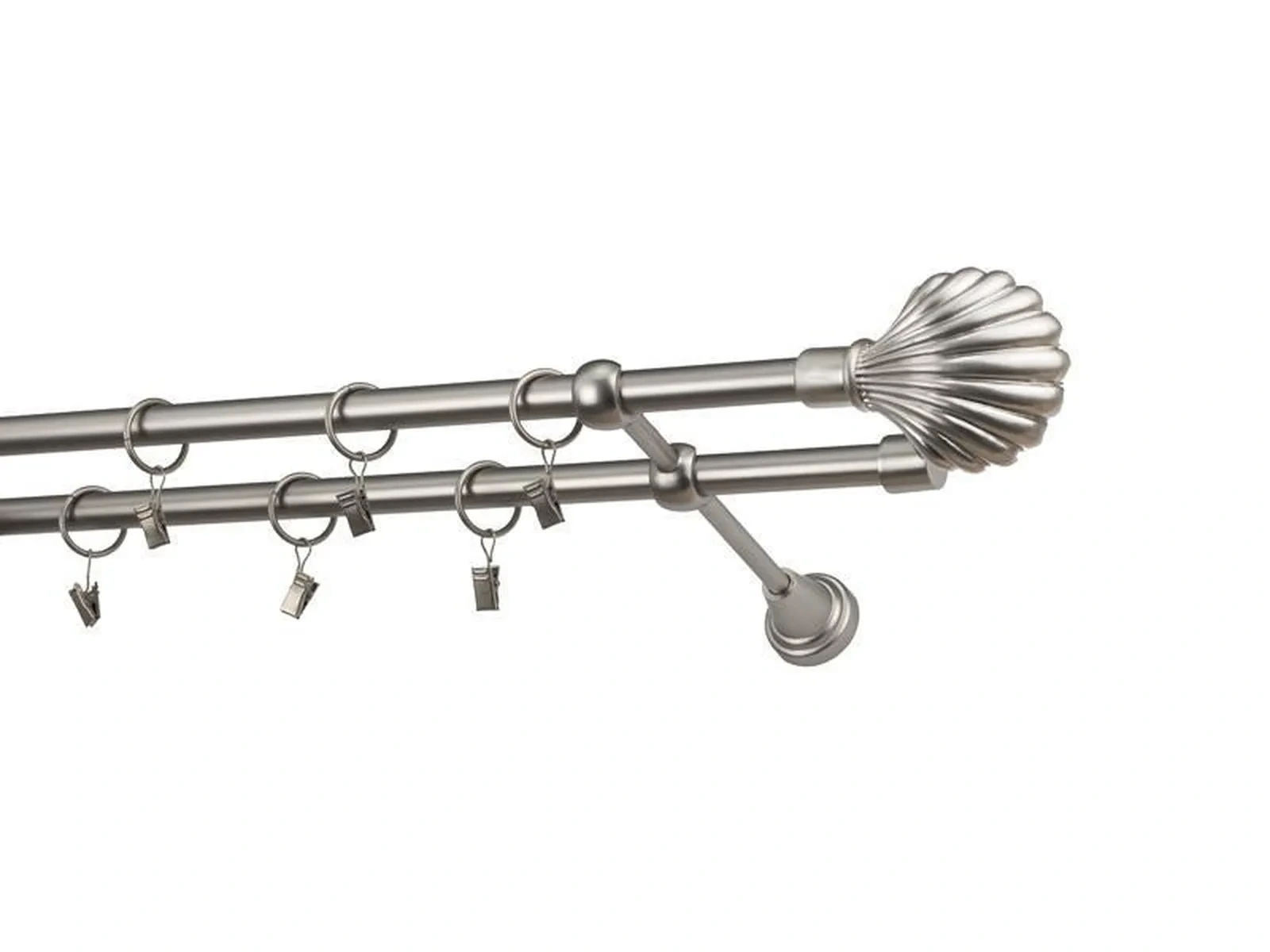 Dvojradová garniža s povrchovou úpravou - odtieň satin-nikel (matné striebro). Celokovové garniže s kvalitnou povrchovou úpravou - galvanické pokovovanie. Galvanické pokovovanie zabezpečuje vyššiu povrchovú tvrdosť, zvýšenú dolnosť voči poškriabaniu, hladký povrch. Dodávané sú v kompletoch.