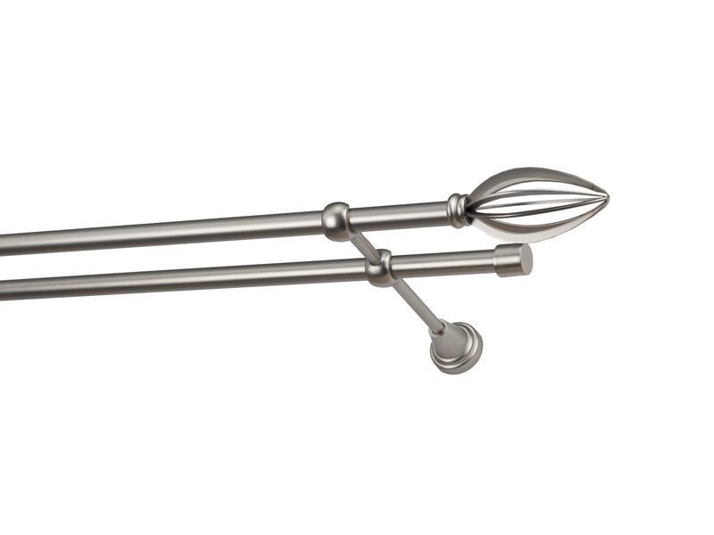 Dvojradová garniža s povrchovou úpravou - odtieň satin-nikel (matné striebro). Celokovové garniže s kvalitnou povrchovou úpravou - galvanické pokovovanie. Galvanické pokovovanie zabezpečuje vyššiu povrchovú tvrdosť, zvýšenú dolnosť voči poškriabaniu, hladký povrch. Dodávané sú v kompletoch.