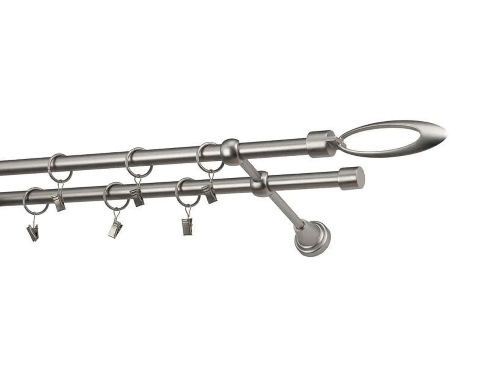 Dvojradová garniža s povrchovou úpravou - odtieň satin-nikel (matné striebro). Celokovové garniže s kvalitnou povrchovou úpravou - galvanické pokovovanie. Galvanické pokovovanie zabezpečuje vyššiu povrchovú tvrdosť, zvýšenú dolnosť voči poškriabaniu, hladký povrch. Dodávané sú v kompletoch.