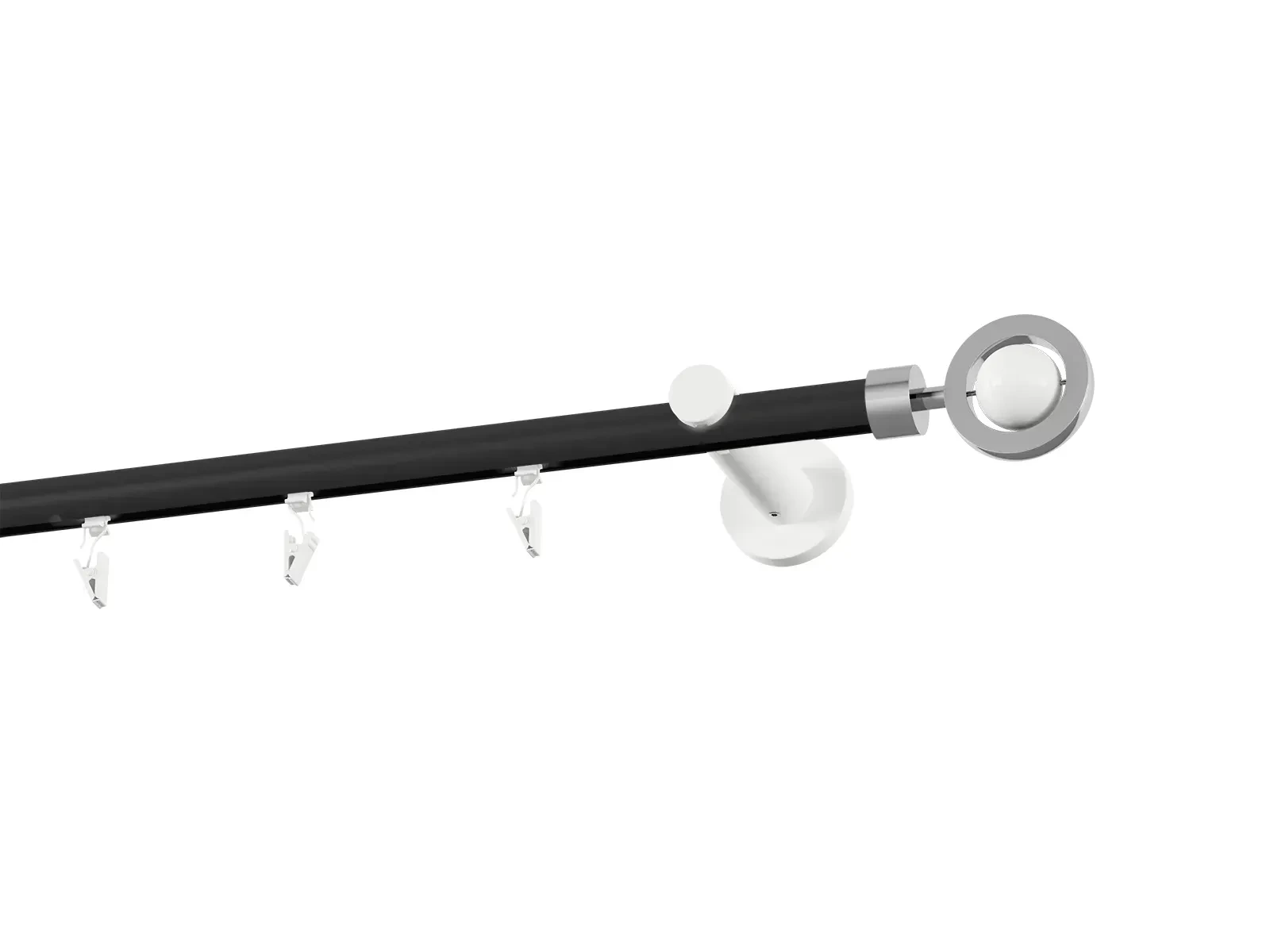 Jednořadá drážková garnýž s povrchovou úpravou - černo bílá lakovaná. Garnyže jsou dodávány jsou v kompletech. Tvar koncovky a typ držáku dle zadaného výběru.