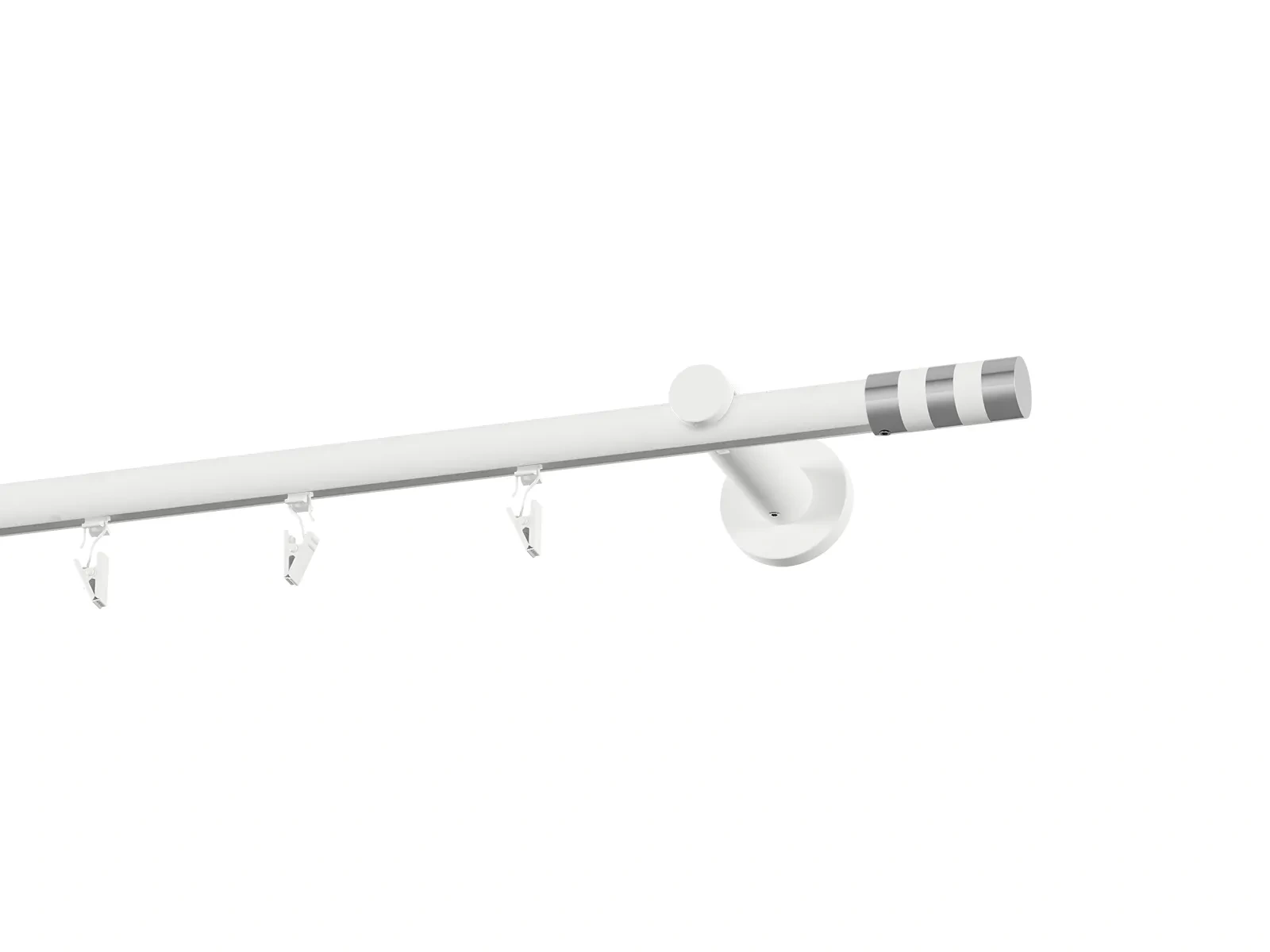 Jednořadá drážková garnýž s povrchovou úpravou - bílá lakovaná. Garnyže jsou dodávány jsou v kompletech. Tvar koncovky a typ držáku dle zadaného výběru.