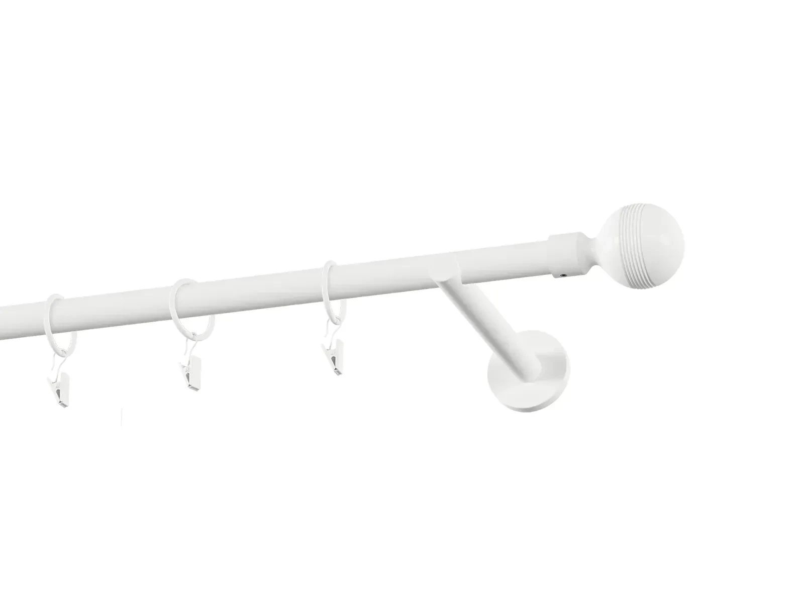 Jednořadá garnýž s povrchovou úpravou - bílá lakovaná. Garnyže jsou dodávány jsou v kompletech. Tvar koncovky a typ držáku dle zadaného výběru.