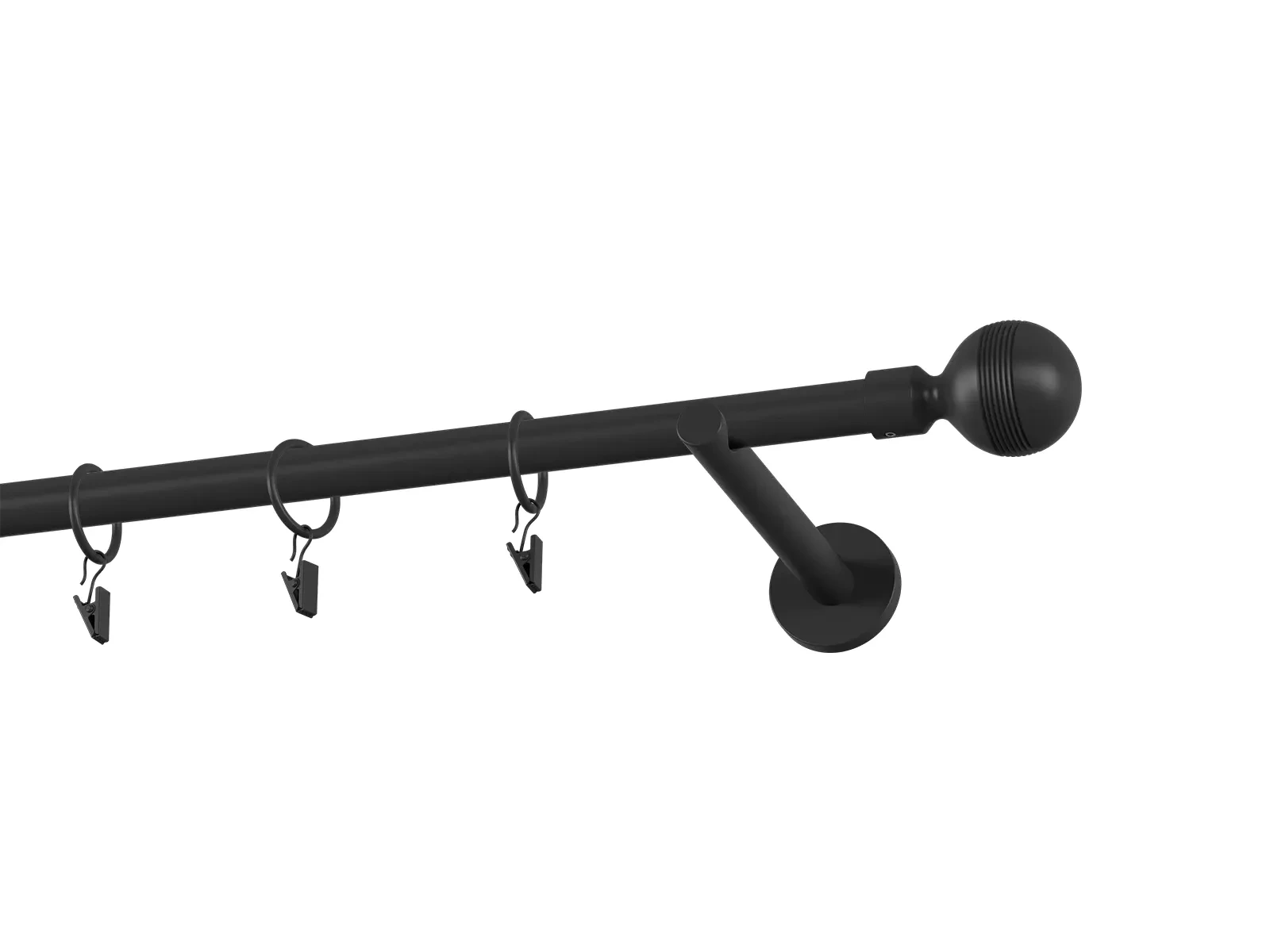 Jednořadá garnýž s povrchovou úpravou - černá lakovaná. Garnyže jsou dodávány jsou v kompletech. Tvar koncovky a typ držáku dle zadaného výběru.