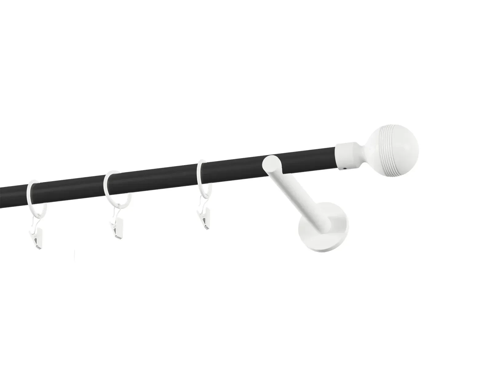 Jednořadá garnýž s povrchovou úpravou - černo bílá lakovaná. Garnyže jsou dodávány jsou v kompletech. Tvar koncovky a typ držáku dle zadaného výběru.