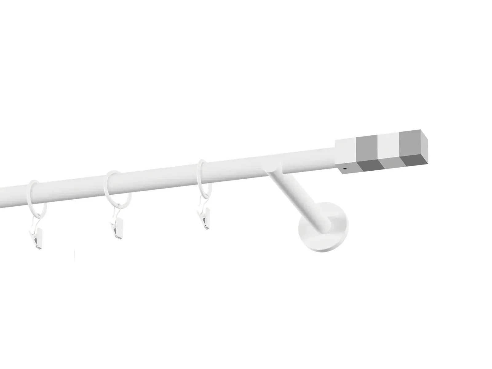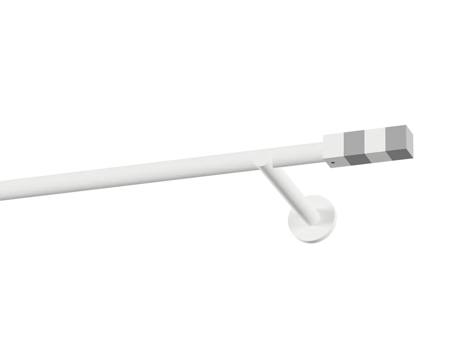 Jednořadá garnýž s povrchovou úpravou - bílá lakovaná. Garnyže jsou dodávány jsou v kompletech. Tvar koncovky a typ držáku dle zadaného výběru.
