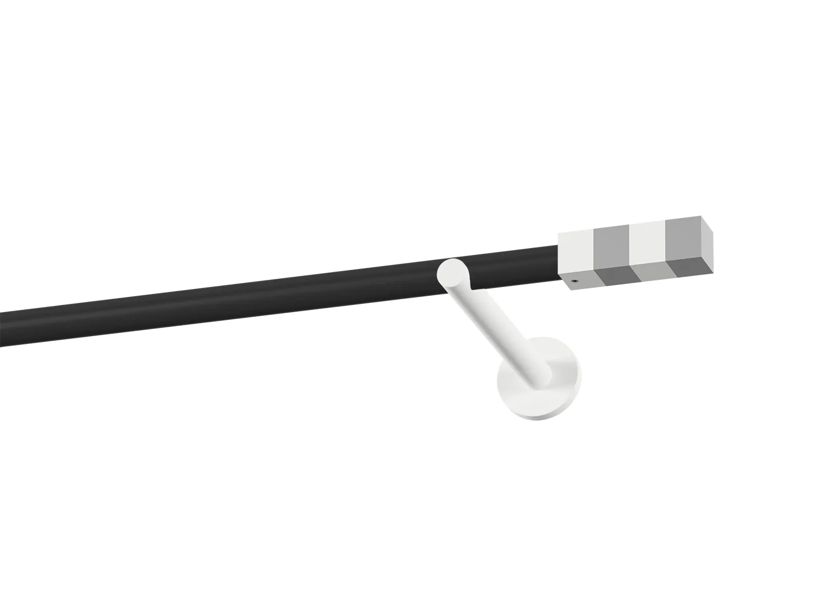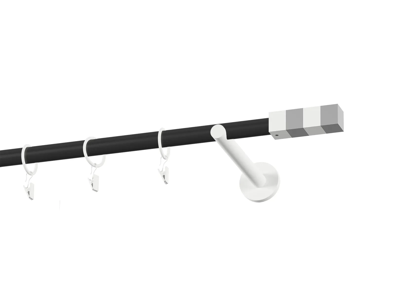 Jednořadá garnýž s povrchovou úpravou - černo bílá lakovaná. Garnyže jsou dodávány jsou v kompletech. Tvar koncovky a typ držáku dle zadaného výběru.