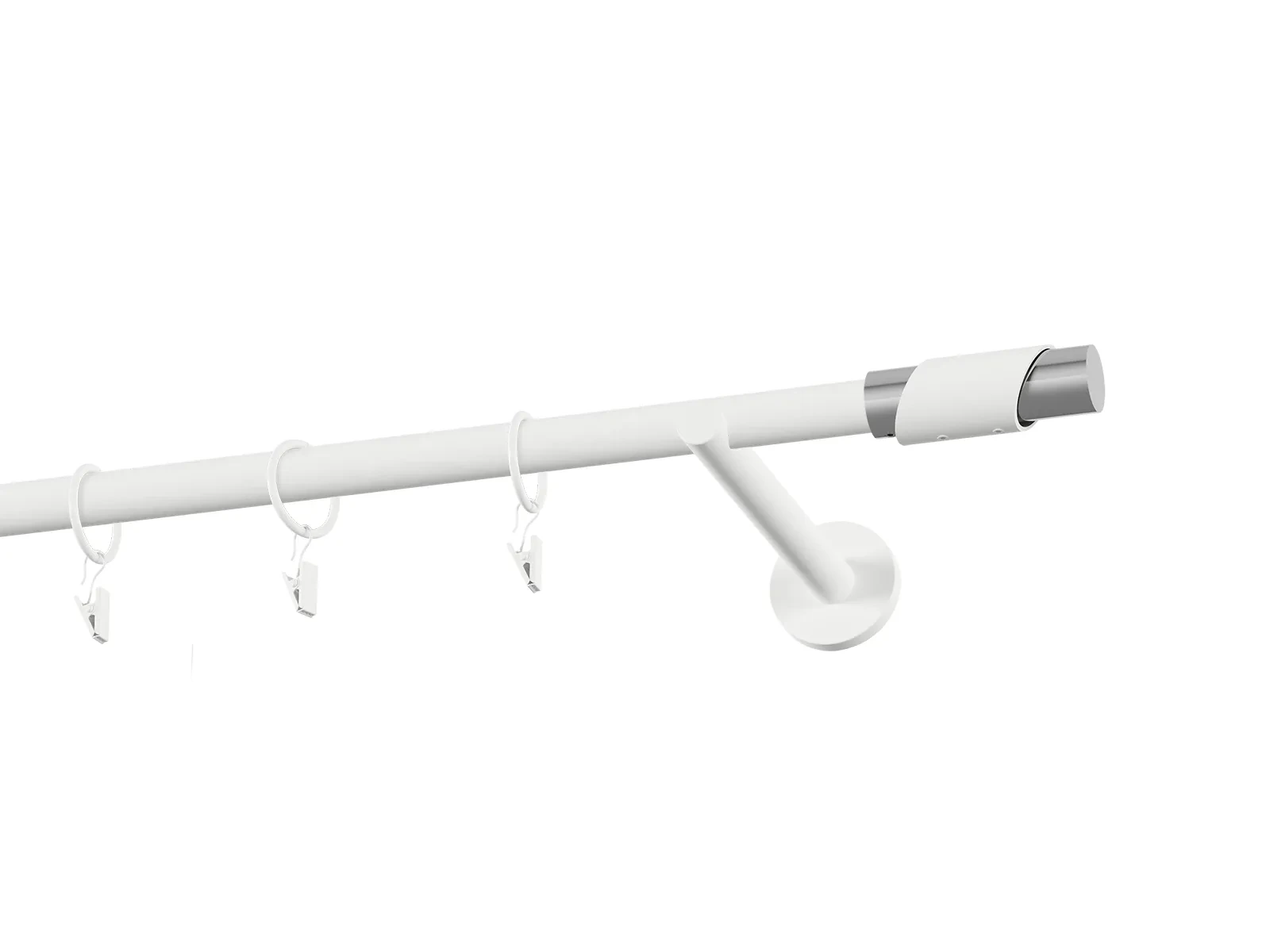 Jednořadá garnýž s povrchovou úpravou - bílá lakovaná. Garnyže jsou dodávány jsou v kompletech. Tvar koncovky a typ držáku dle zadaného výběru.
