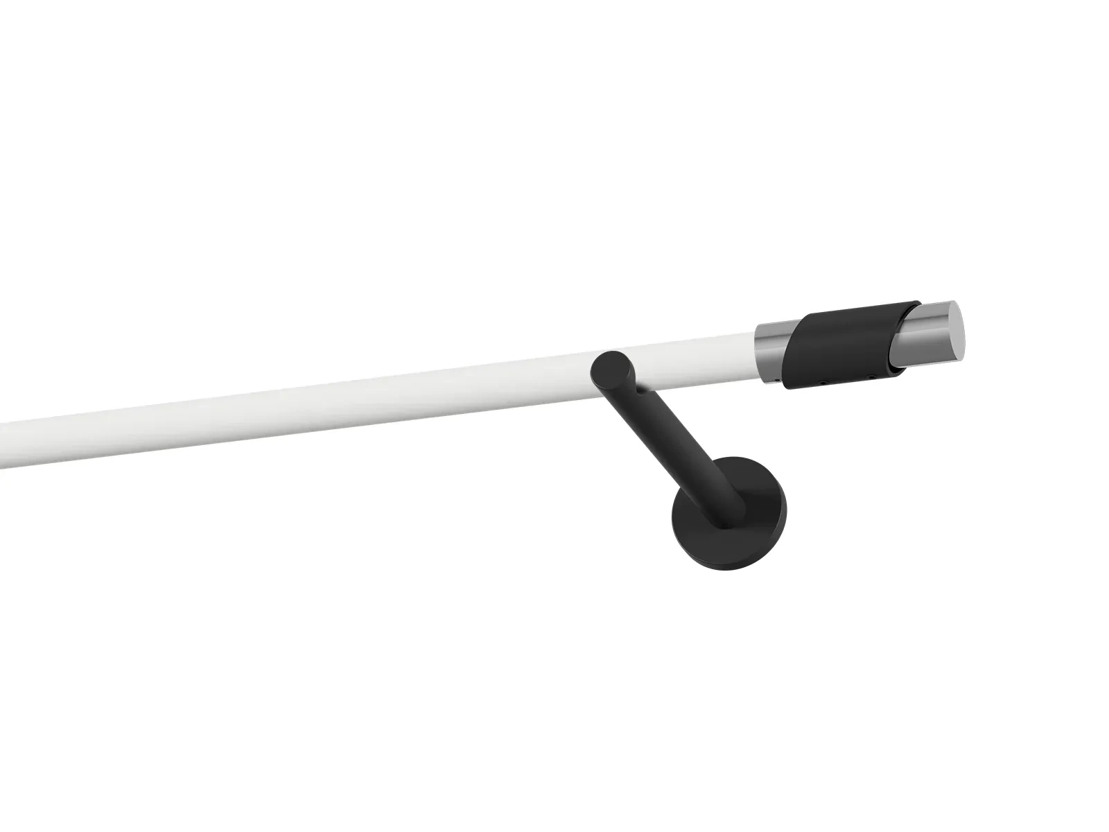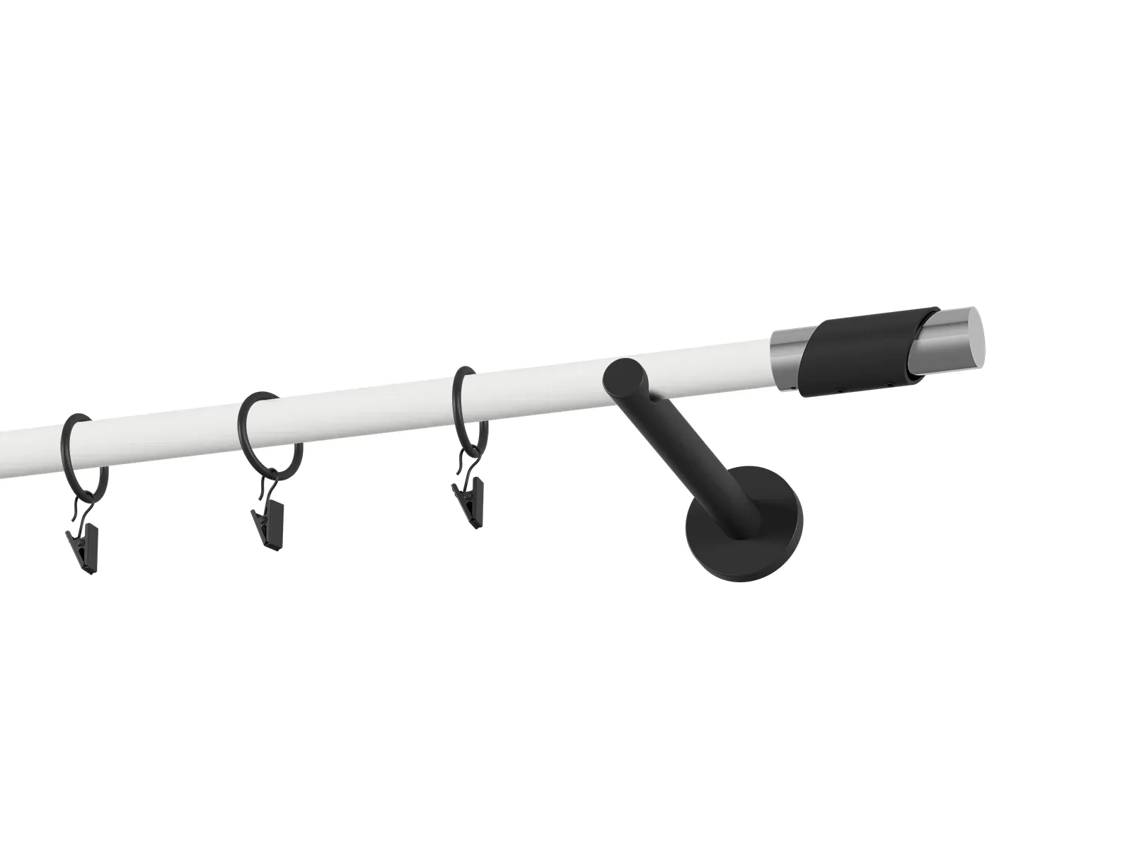 Jednořadá garnýž s povrchovou úpravou - bílo černá lakovaná. Garnyže jsou dodávány jsou v kompletech. Tvar koncovky a typ držáku dle zadaného výběru.