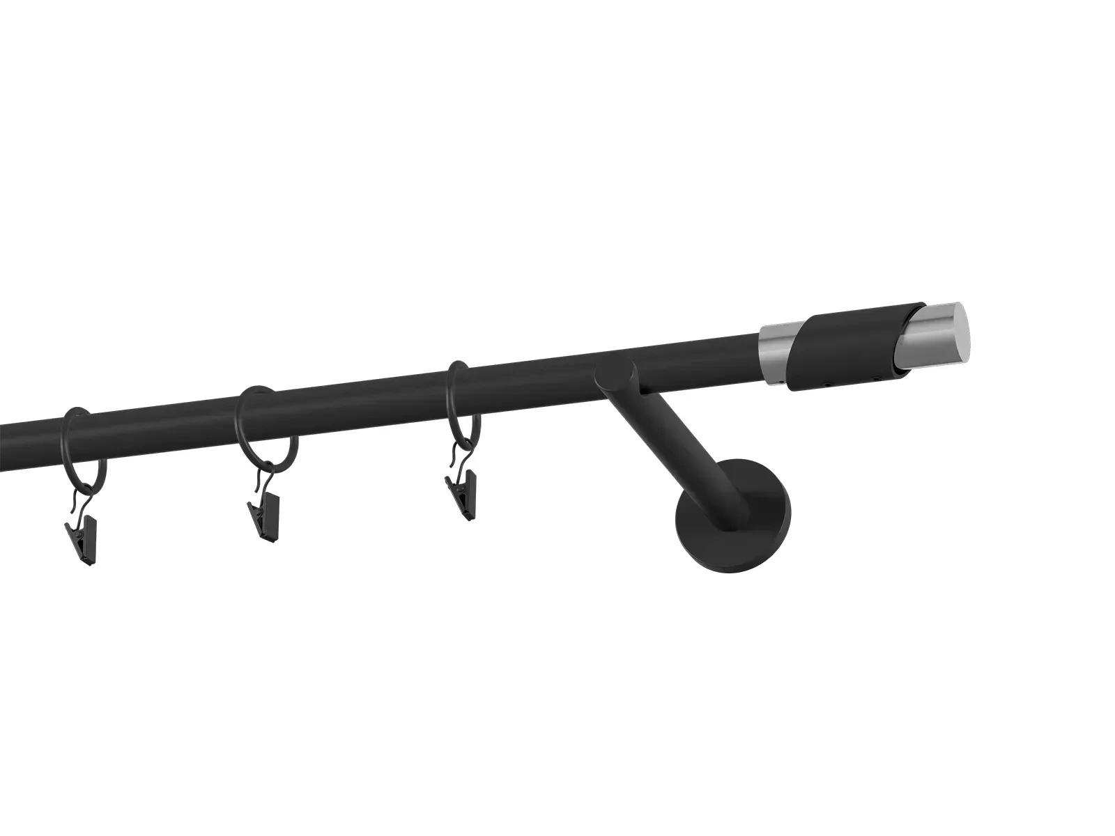 Jednořadá garnýž s povrchovou úpravou - černá lakovaná. Garnyže jsou dodávány jsou v kompletech. Tvar koncovky a typ držáku dle zadaného výběru.