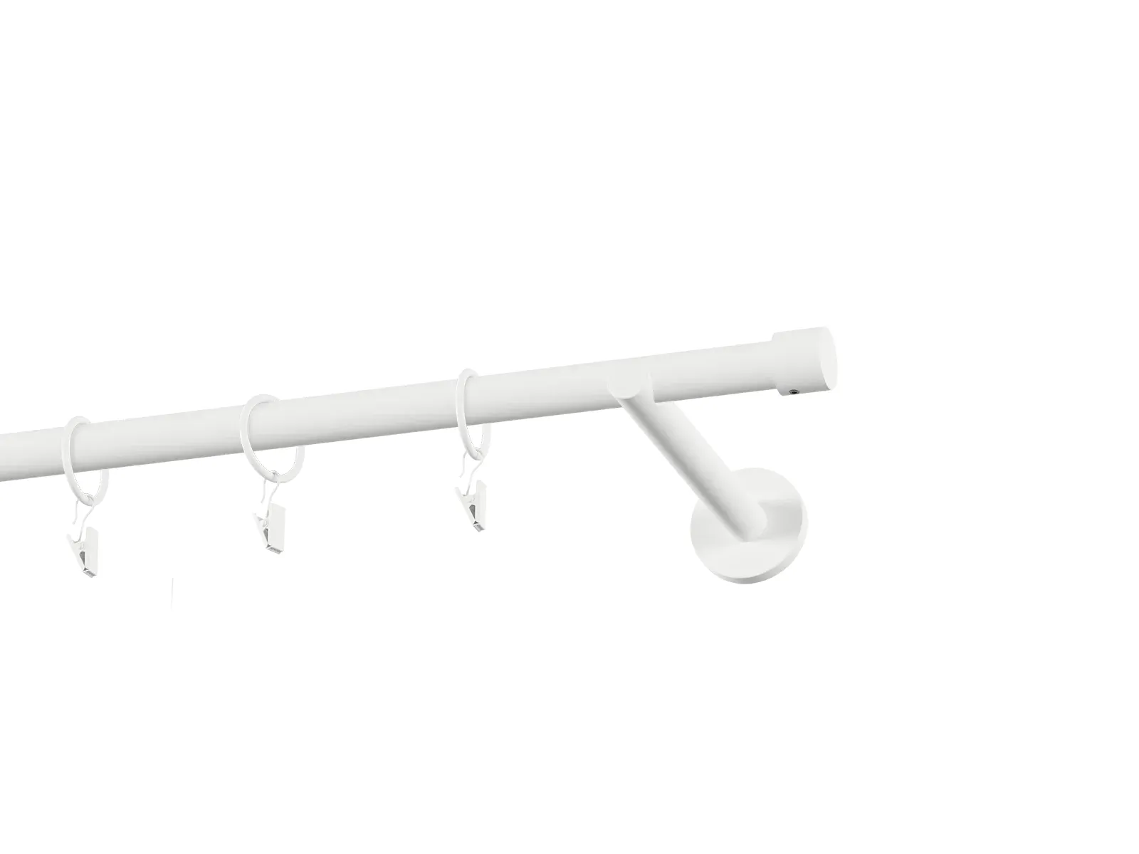 Jednořadá garnýž s povrchovou úpravou - bílá lakovaná. Garnyže jsou dodávány jsou v kompletech. Tvar koncovky a typ držáku dle zadaného výběru.