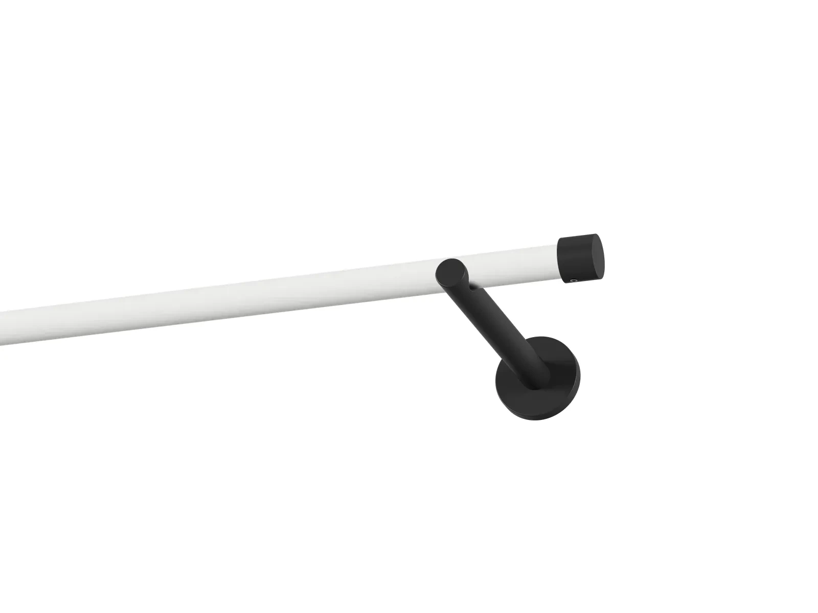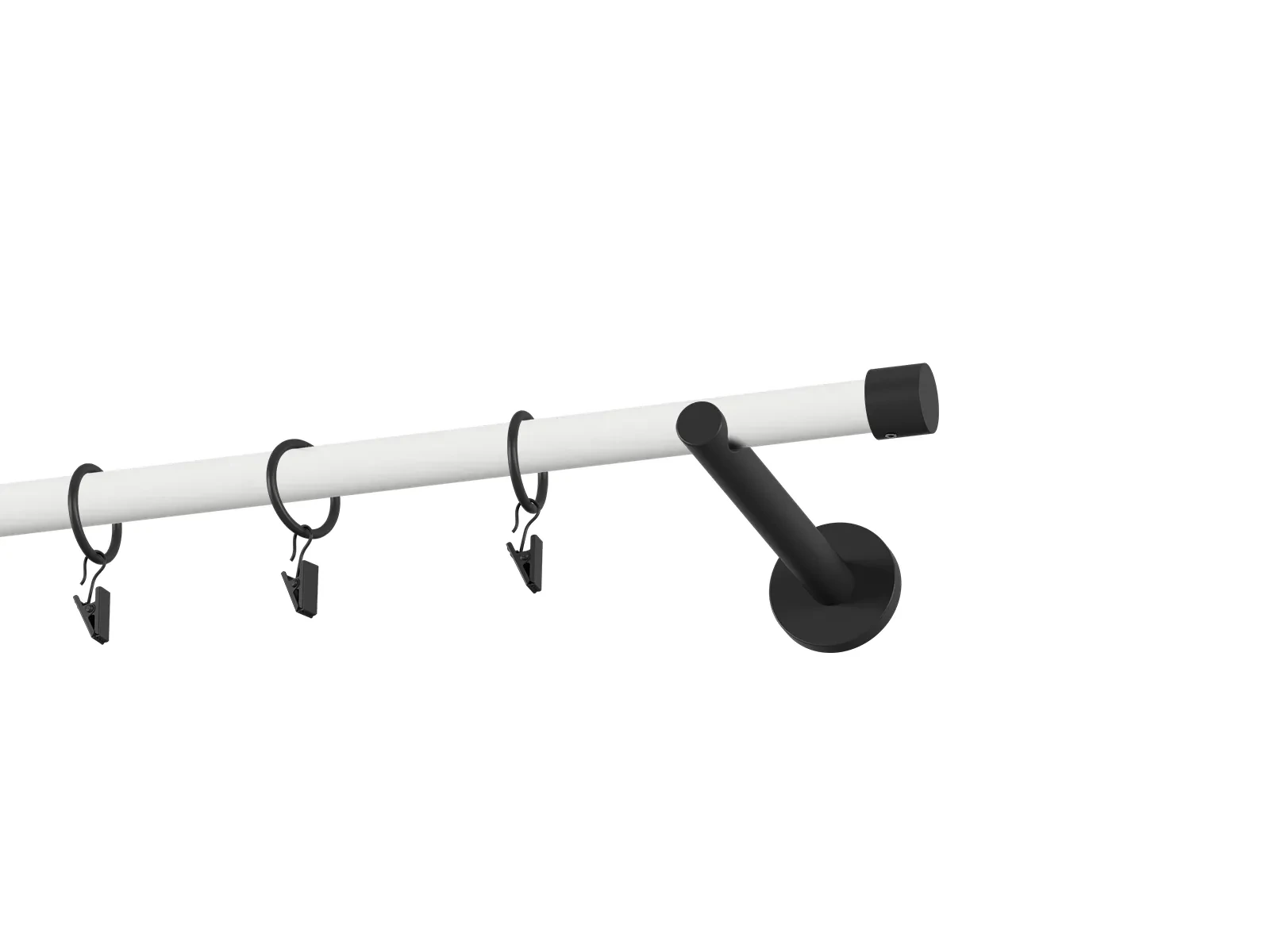 Jednořadá garnýž s povrchovou úpravou - bílo černá lakovaná. Garnyže jsou dodávány jsou v kompletech. Tvar koncovky a typ držáku dle zadaného výběru.