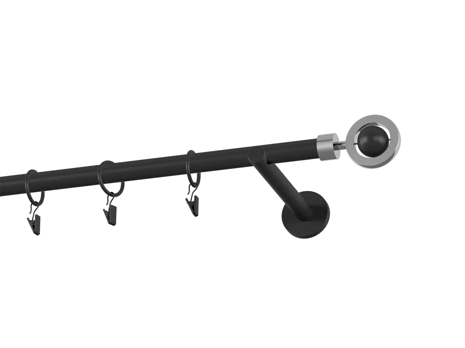 Jednořadá garnýž s povrchovou úpravou - černá lakovaná. Garnyže jsou dodávány jsou v kompletech. Tvar koncovky a typ držáku dle zadaného výběru.