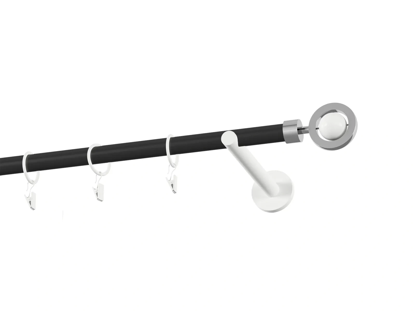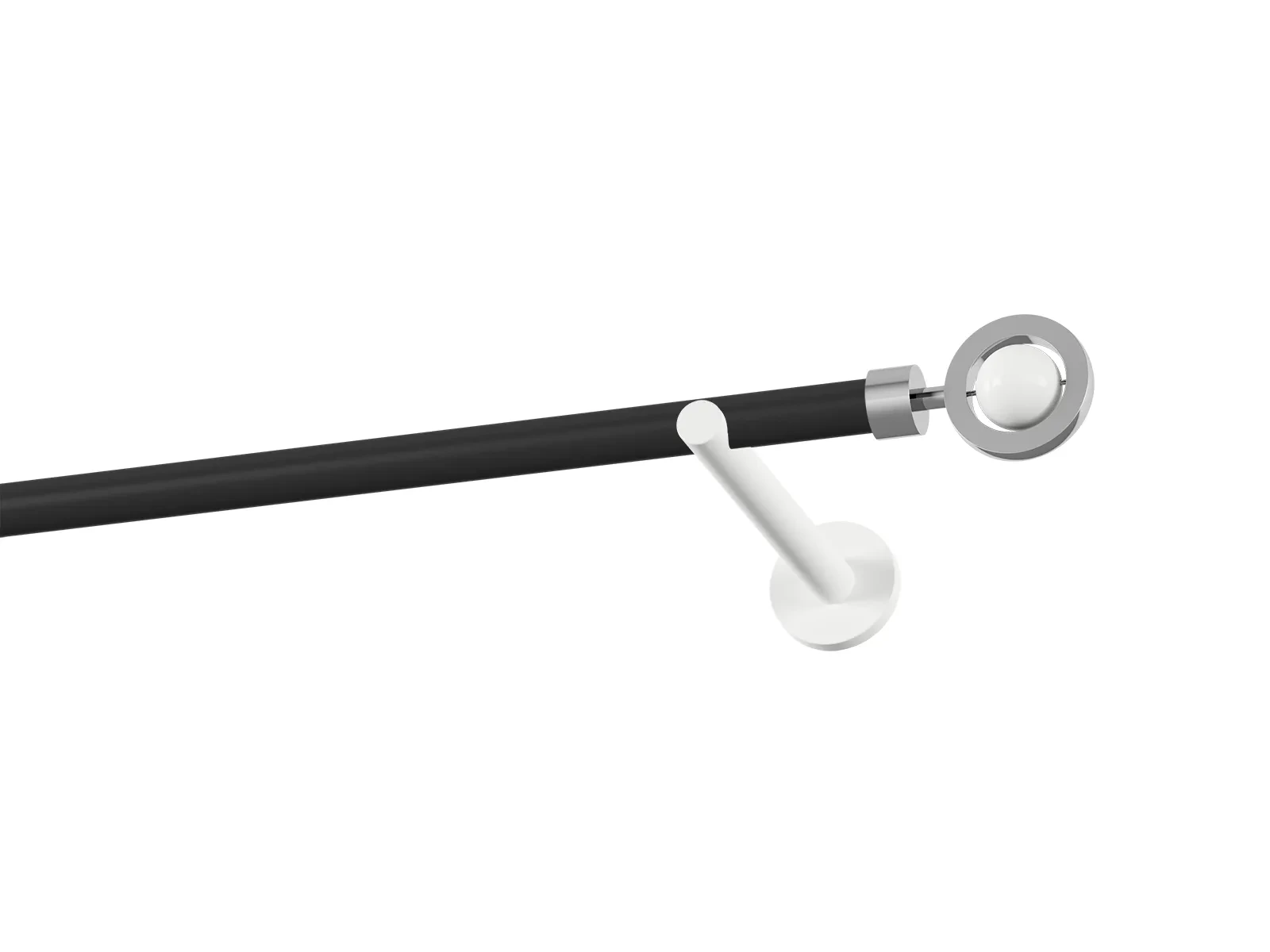 Jednořadá garnýž s povrchovou úpravou - černo bílá lakovaná. Garnyže jsou dodávány jsou v kompletech. Tvar koncovky a typ držáku dle zadaného výběru.