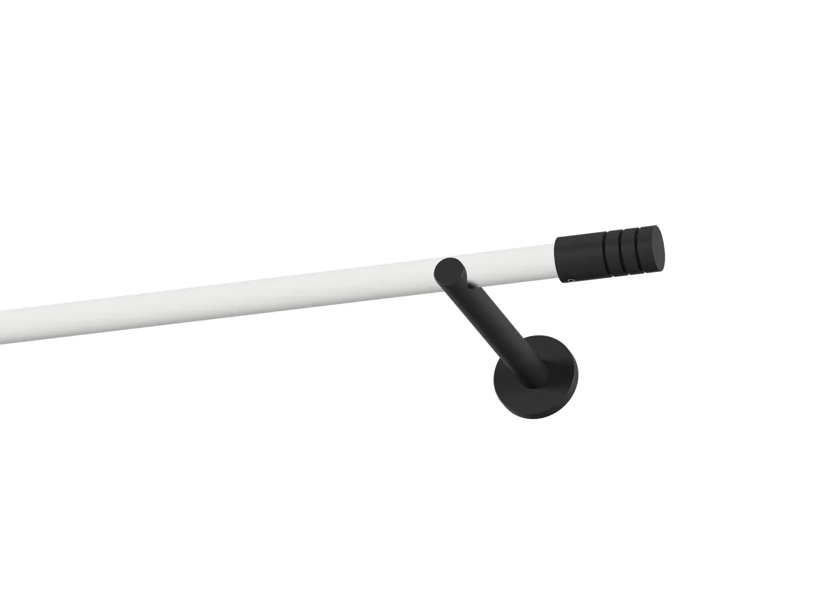 Jednořadá garnýž s povrchovou úpravou - bílo černá lakovaná. Garnyže jsou dodávány jsou v kompletech. Tvar koncovky a typ držáku dle zadaného výběru.