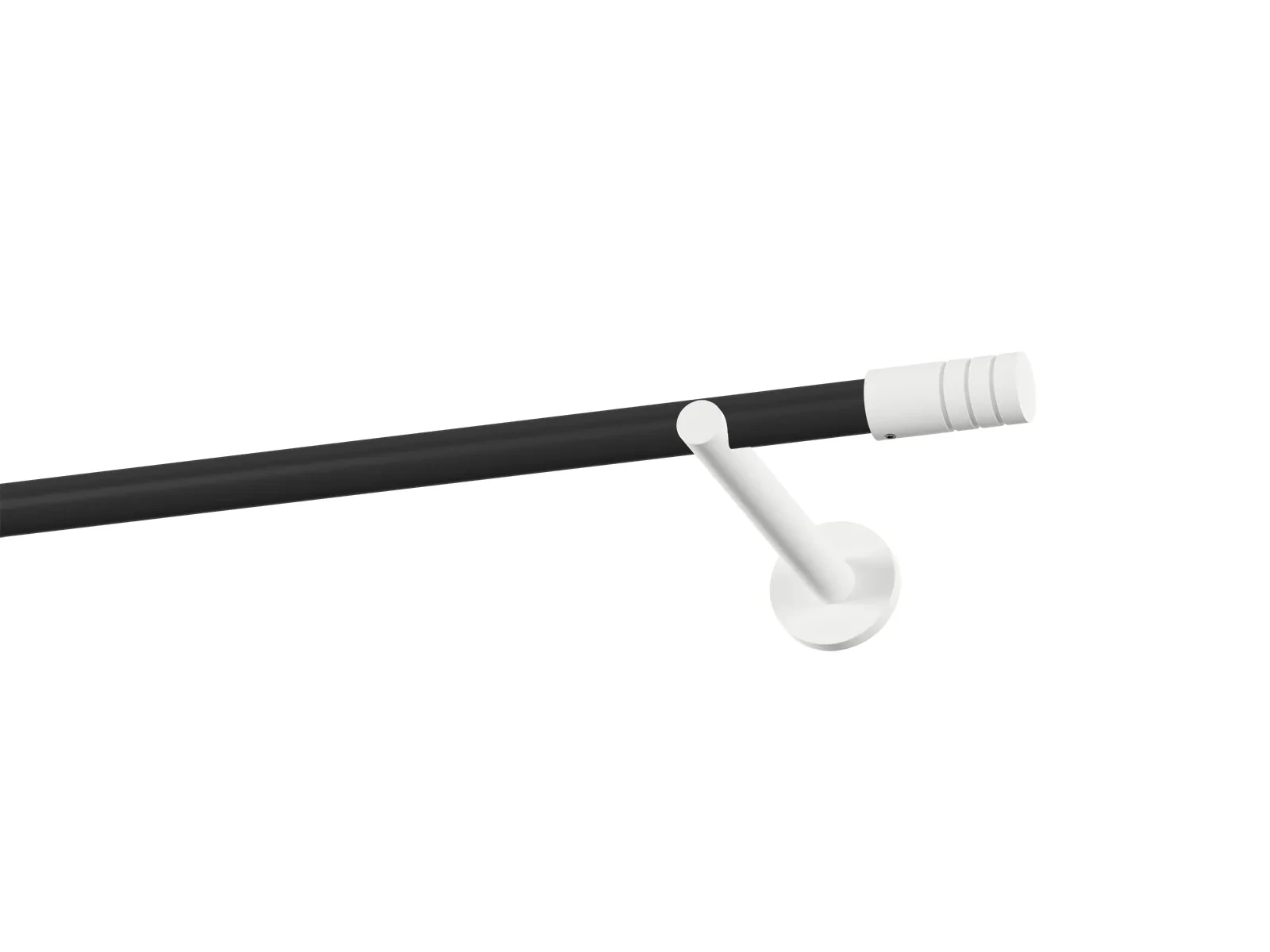 Jednořadá garnýž s povrchovou úpravou - černo bílá lakovaná. Garnyže jsou dodávány jsou v kompletech. Tvar koncovky a typ držáku dle zadaného výběru.