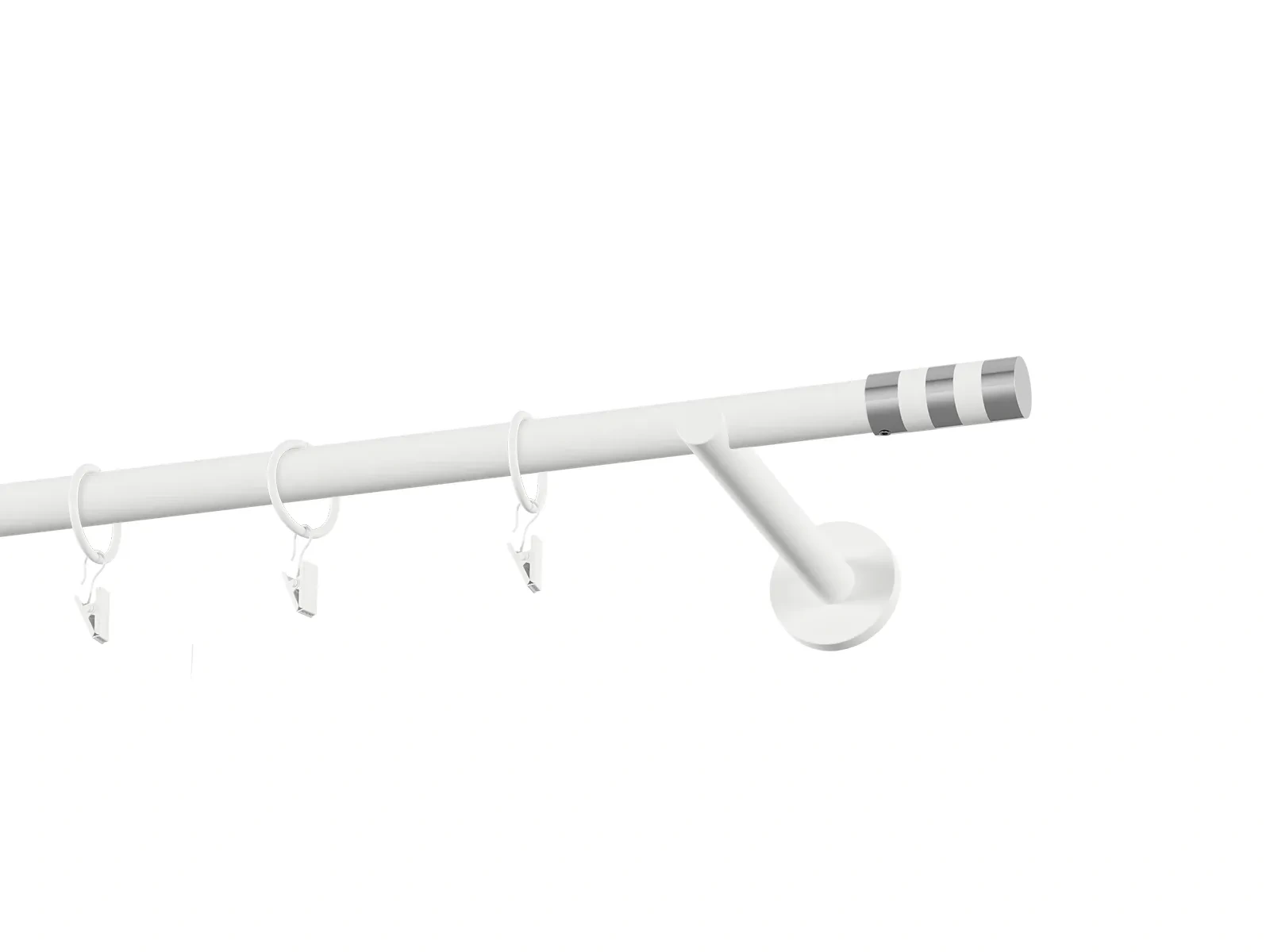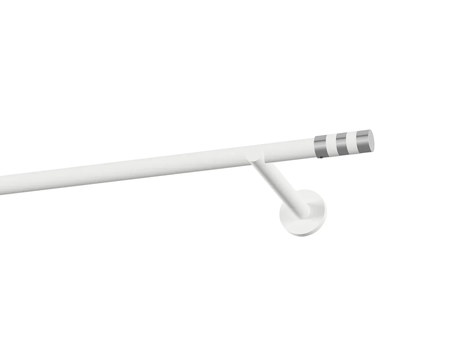 Jednořadá garnýž s povrchovou úpravou - bílá lakovaná. Garnyže jsou dodávány jsou v kompletech. Tvar koncovky a typ držáku dle zadaného výběru.