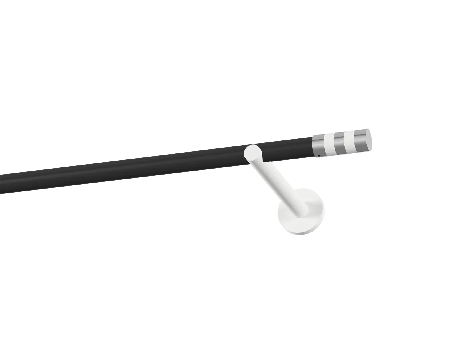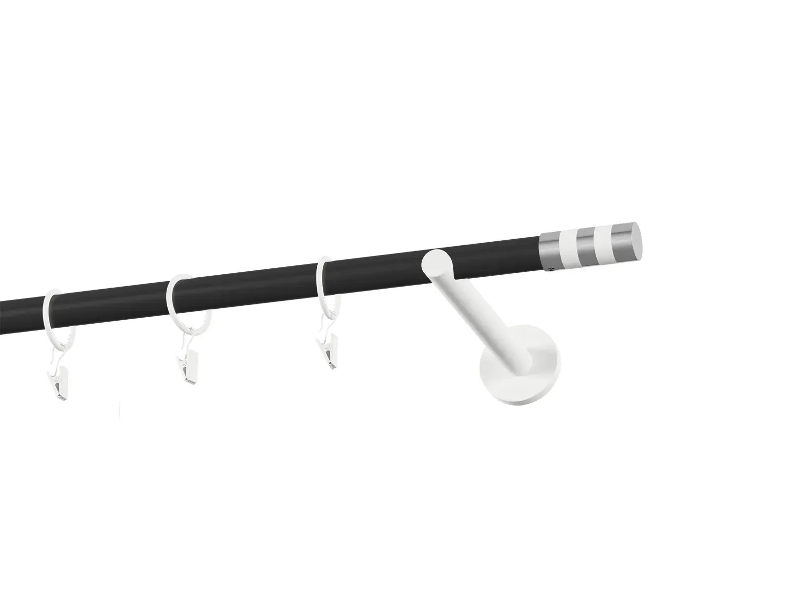 Jednořadá garnýž s povrchovou úpravou - černo bílá lakovaná. Garnyže jsou dodávány jsou v kompletech. Tvar koncovky a typ držáku dle zadaného výběru.