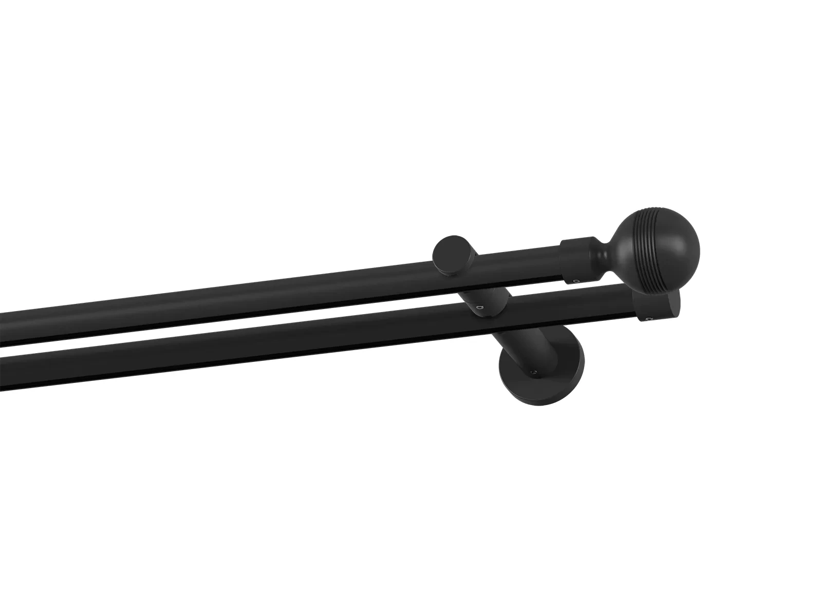 Dvouřadá drážková garnýž s povrchovou úpravou - černá lakovaná. Garnyže jsou dodávány jsou v kompletech. Tvar koncovky a typ držáku dle zadaného výběru.