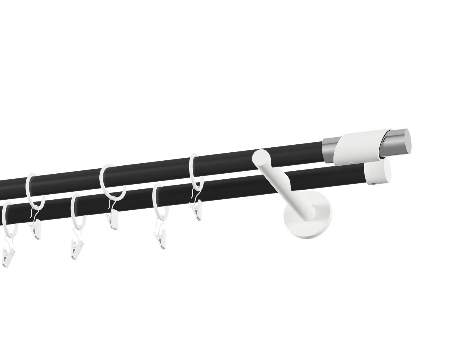 Dvouřadá garnýž s povrchovou úpravou - černo bílá lakovaná. Garnyže jsou dodávány jsou v kompletech. Tvar koncovky a typ držáku dle zadaného výběru.