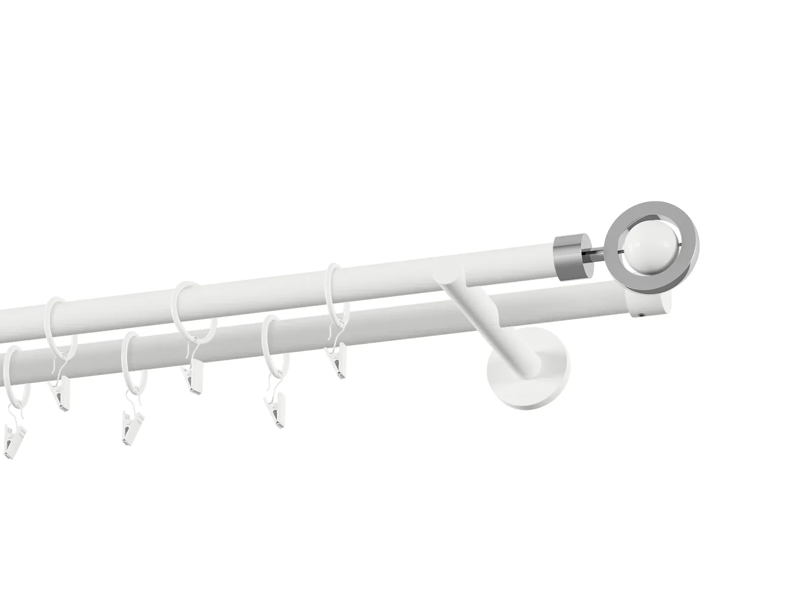 Dvouřadá garnýž s povrchovou úpravou - bílá lakovaná. Garnyže jsou dodávány jsou v kompletech. Tvar koncovky a typ držáku dle zadaného výběru.