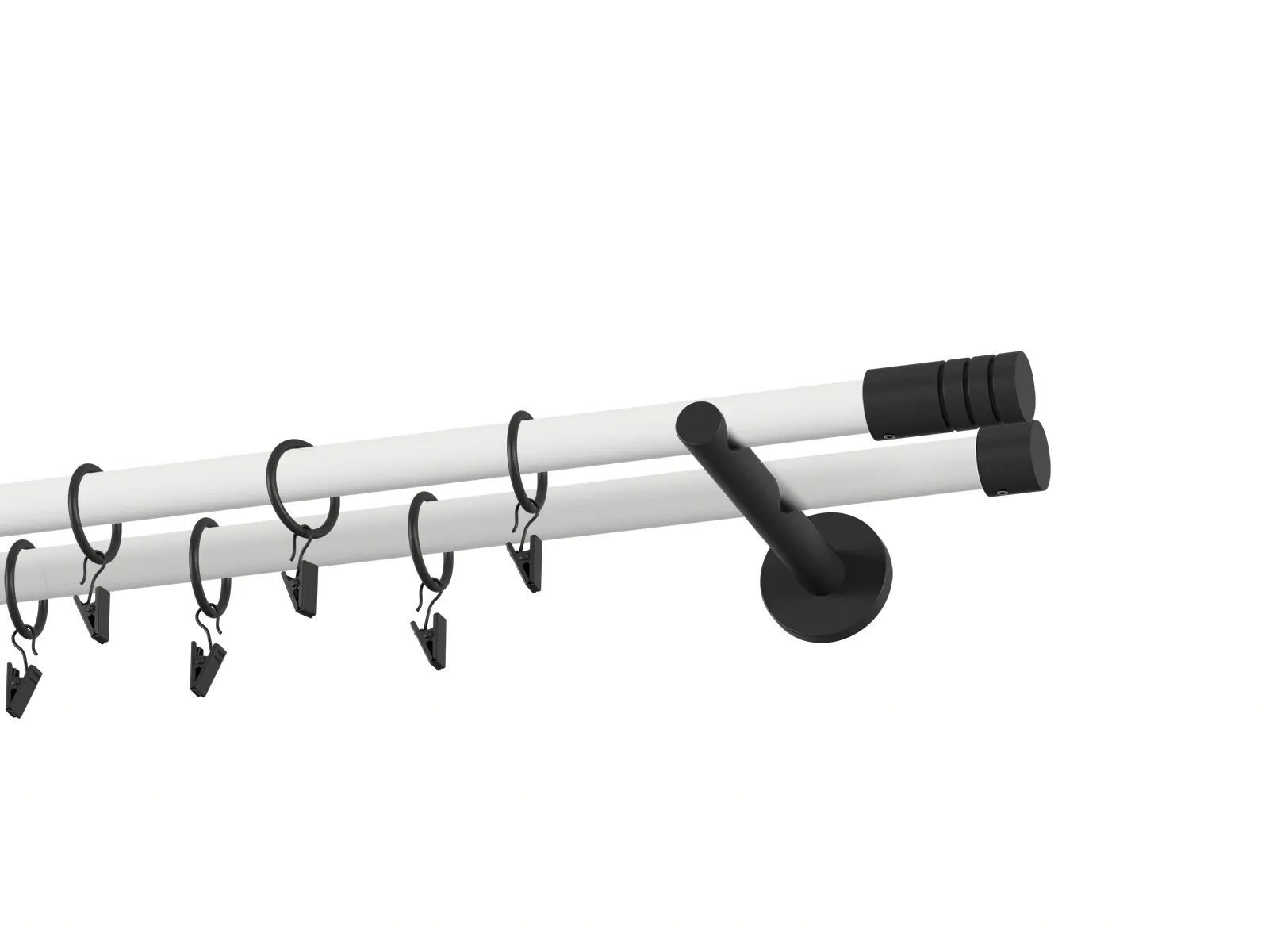 Dvouřadá garnýž s povrchovou úpravou - bílo černá lakovaná. Garnyže jsou dodávány jsou v kompletech. Tvar koncovky a typ držáku dle zadaného výběru.