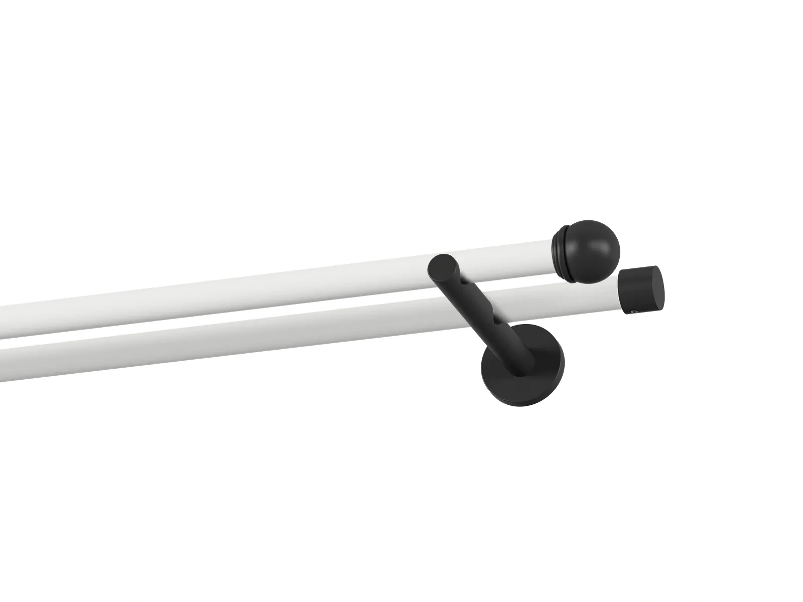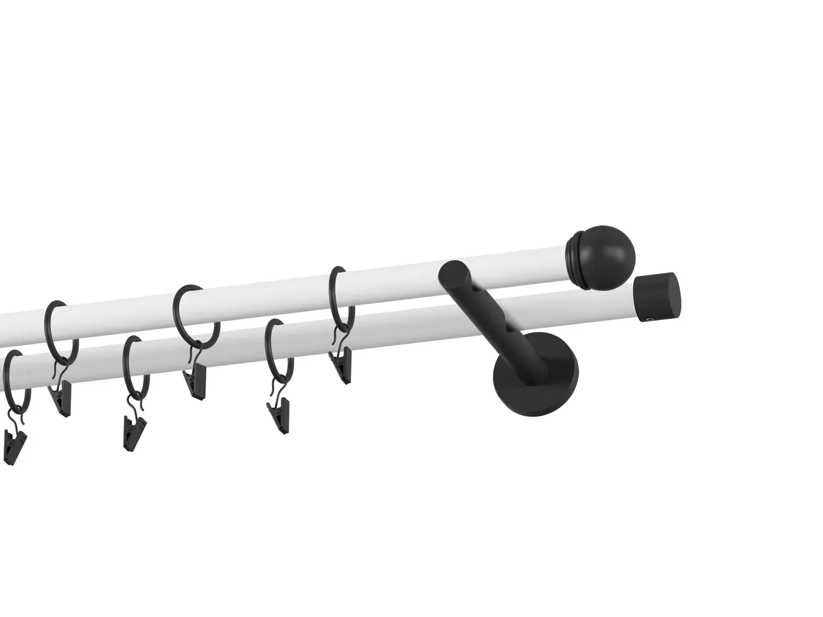 Dvouřadá garnýž s povrchovou úpravou - bílo černá lakovaná. Garnyže jsou dodávány jsou v kompletech. Tvar koncovky a typ držáku dle zadaného výběru.
