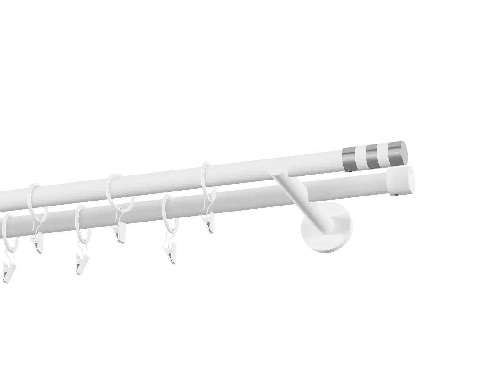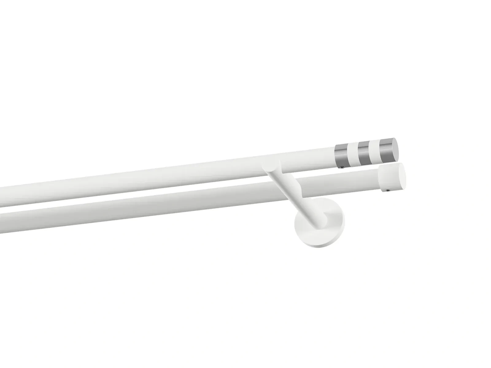 Dvouřadá garnýž s povrchovou úpravou - bílá lakovaná. Garnyže jsou dodávány jsou v kompletech. Tvar koncovky a typ držáku dle zadaného výběru.