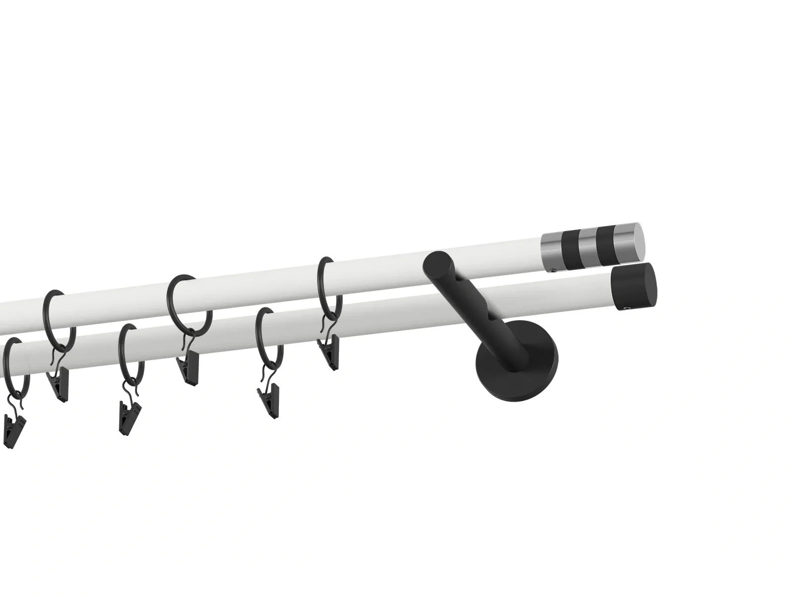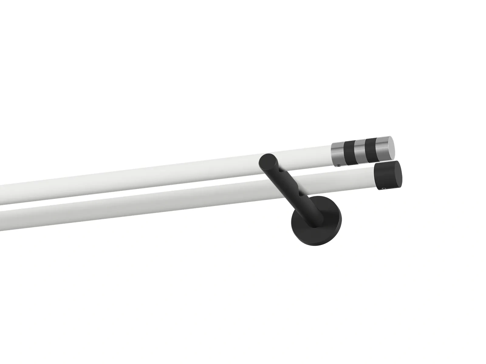 Dvouřadá garnýž s povrchovou úpravou - bílo černá lakovaná. Garnyže jsou dodávány jsou v kompletech. Tvar koncovky a typ držáku dle zadaného výběru.