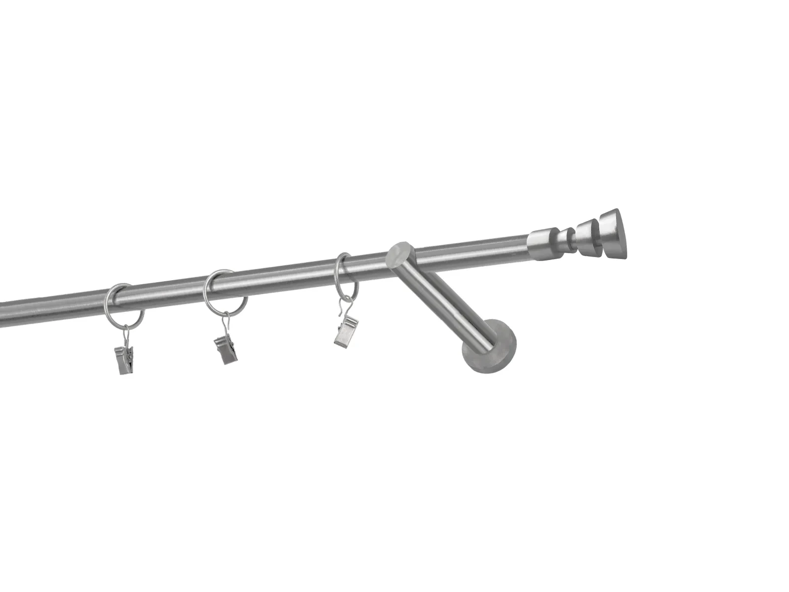 Jednořadá garnýž s povrchovou úpravou - odstín satin (matné stříbro). Celokovová garnýž s kvalitní povrchovou úpravou - galvanické pokovování. Galvanické pokovování zabezpečuje vyšší povrchovou tvrdost, zvýšenú dolnost vůči poškrábání, hladký povrch. Dodávané jsou v kompletech.