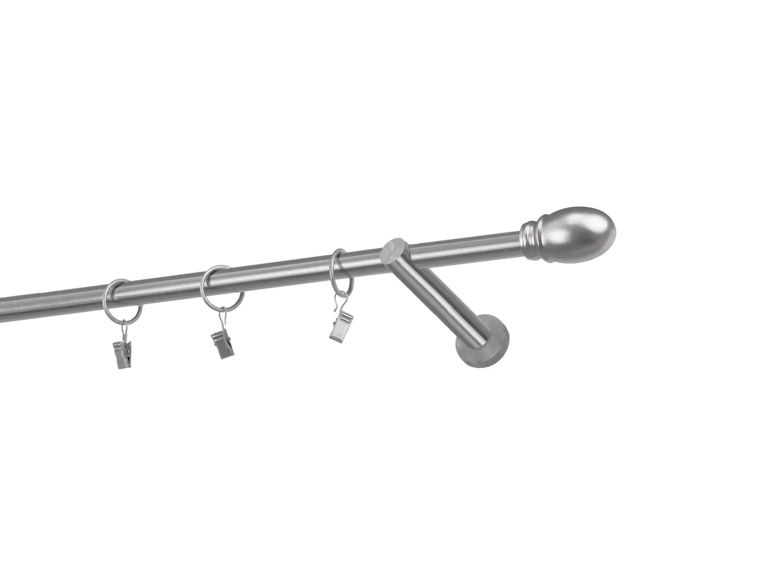 Jednořadá garnýž s povrchovou úpravou - odstín satin (matné stříbro). Celokovová garnýž s kvalitní povrchovou úpravou - galvanické pokovování. Galvanické pokovování zabezpečuje vyšší povrchovou tvrdost, zvýšenú dolnost vůči poškrábání, hladký povrch. Dodávané jsou v kompletech.