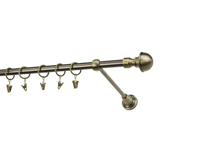 Jednořadá garnýž s povrchovou úpravou - odstín antik (matné zlato). Celokovová garnýž s kvalitní povrchovou úpravou - galvanické pokovování. Galvanické pokovování zabezpečuje vyšší povrchovou tvrdost, zvýšenú dolnost vůči poškrábání, hladký povrch. Dodávané jsou v kompletech.