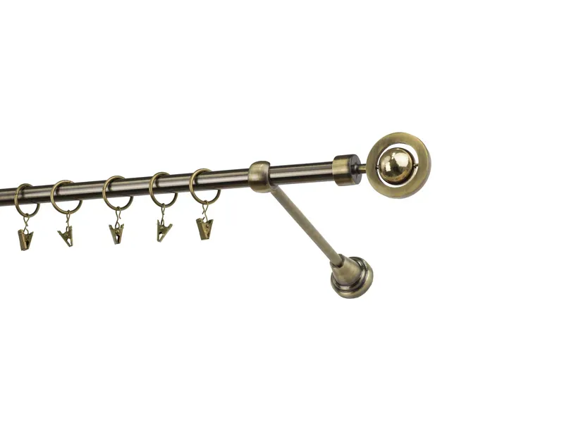 Jednořadá garnýž s povrchovou úpravou - odstín antik (matné zlato). Celokovová garnýž s kvalitní povrchovou úpravou - galvanické pokovování. Galvanické pokovování zabezpečuje vyšší povrchovou tvrdost, zvýšenú dolnost vůči poškrábání, hladký povrch. Dodávané jsou v kompletech.