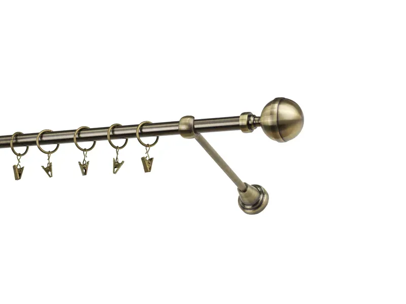 Jednořadá garnýž s povrchovou úpravou - odstín antik (matné zlato). Celokovová garnýž s kvalitní povrchovou úpravou - galvanické pokovování. Galvanické pokovování zabezpečuje vyšší povrchovou tvrdost, zvýšenú dolnost vůči poškrábání, hladký povrch. Dodávané jsou v kompletech.