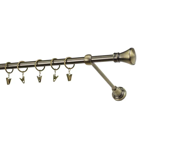 Jednořadá garnýž s povrchovou úpravou - odstín antik (matné zlato). Celokovová garnýž s kvalitní povrchovou úpravou - galvanické pokovování. Galvanické pokovování zabezpečuje vyšší povrchovou tvrdost, zvýšenú dolnost vůči poškrábání, hladký povrch. Dodávané jsou v kompletech.