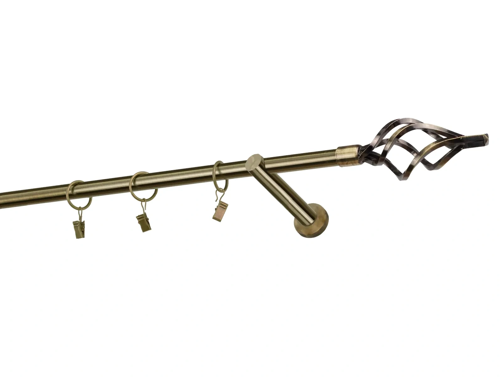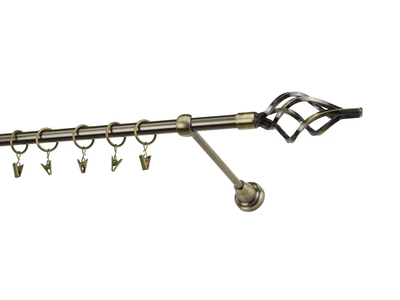 Jednořadá garnýž s povrchovou úpravou - odstín antik (matné zlato). Celokovová garnýž s kvalitní povrchovou úpravou - galvanické pokovování. Galvanické pokovování zabezpečuje vyšší povrchovou tvrdost, zvýšenú dolnost vůči poškrábání, hladký povrch. Dodávané jsou v kompletech.