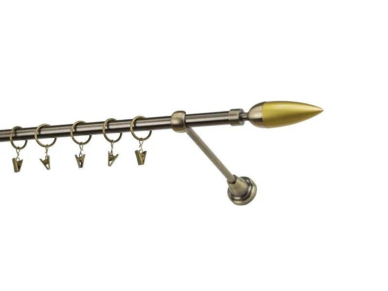 Jednořadá garnýž s povrchovou úpravou - odstín antik (matné zlato). Celokovová garnýž s kvalitní povrchovou úpravou - galvanické pokovování. Galvanické pokovování zabezpečuje vyšší povrchovou tvrdost, zvýšenú dolnost vůči poškrábání, hladký povrch. Dodávané jsou v kompletech.