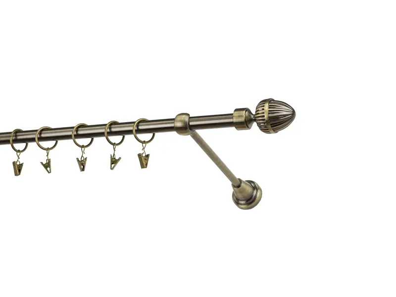 Jednořadá garnýž s povrchovou úpravou - odstín antik (matné zlato). Celokovová garnýž s kvalitní povrchovou úpravou - galvanické pokovování. Galvanické pokovování zabezpečuje vyšší povrchovou tvrdost, zvýšenú dolnost vůči poškrábání, hladký povrch. Dodávané jsou v kompletech.