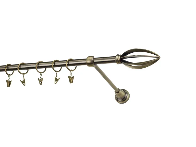 Jednořadá garnýž s povrchovou úpravou - odstín antik (matné zlato). Celokovová garnýž s kvalitní povrchovou úpravou - galvanické pokovování. Galvanické pokovování zabezpečuje vyšší povrchovou tvrdost, zvýšenú dolnost vůči poškrábání, hladký povrch. Dodávané jsou v kompletech.