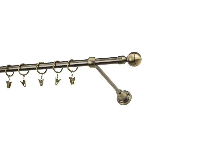 Jednořadá garnýž s povrchovou úpravou - odstín antik (matné zlato). Celokovová garnýž s kvalitní povrchovou úpravou - galvanické pokovování. Galvanické pokovování zabezpečuje vyšší povrchovou tvrdost, zvýšenú dolnost vůči poškrábání, hladký povrch. Dodávané jsou v kompletech.