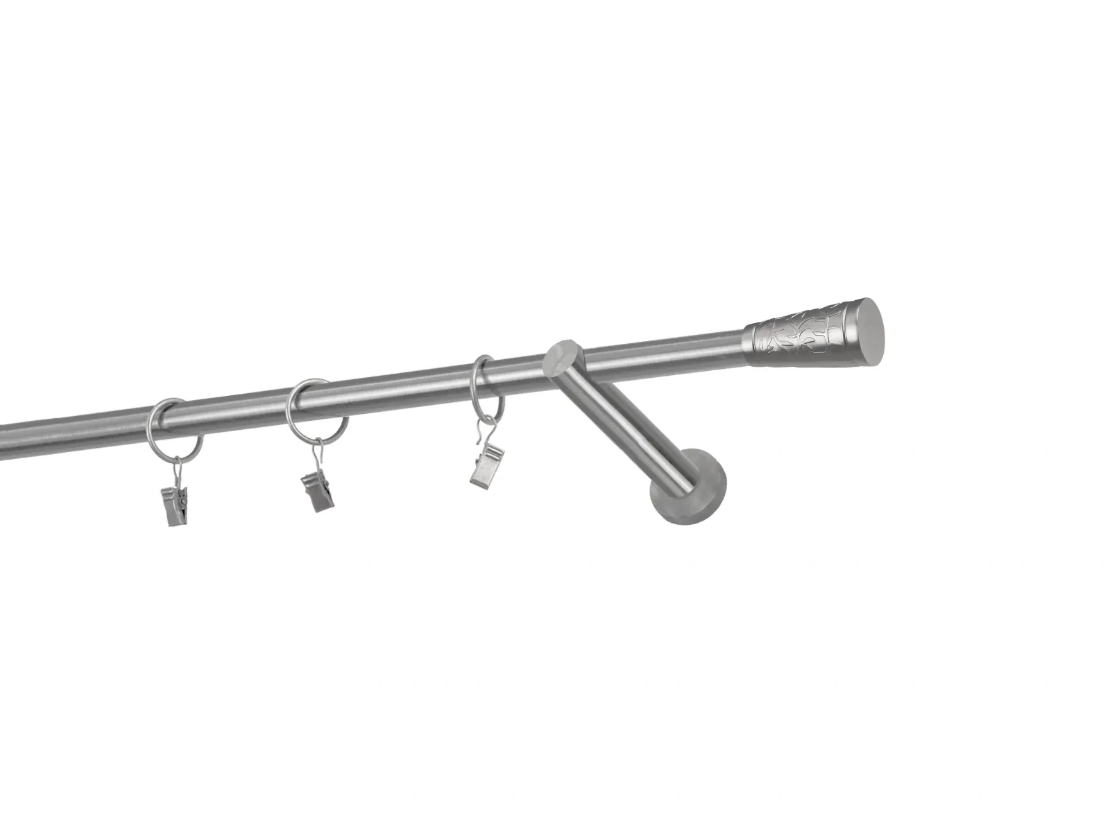 Jednořadá garnýž s povrchovou úpravou - odstín satin (matné stříbro). Celokovová garnýž s kvalitní povrchovou úpravou - galvanické pokovování. Galvanické pokovování zabezpečuje vyšší povrchovou tvrdost, zvýšenú dolnost vůči poškrábání, hladký povrch. Dodávané jsou v kompletech.