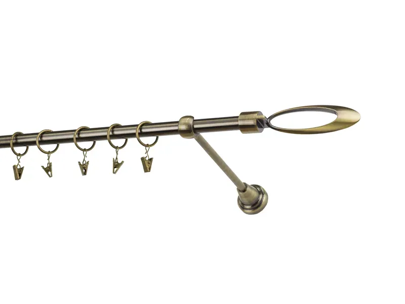 Jednořadá garnýž s povrchovou úpravou - odstín antik (matné zlato). Celokovová garnýž s kvalitní povrchovou úpravou - galvanické pokovování. Galvanické pokovování zabezpečuje vyšší povrchovou tvrdost, zvýšenú dolnost vůči poškrábání, hladký povrch. Dodávané jsou v kompletech.