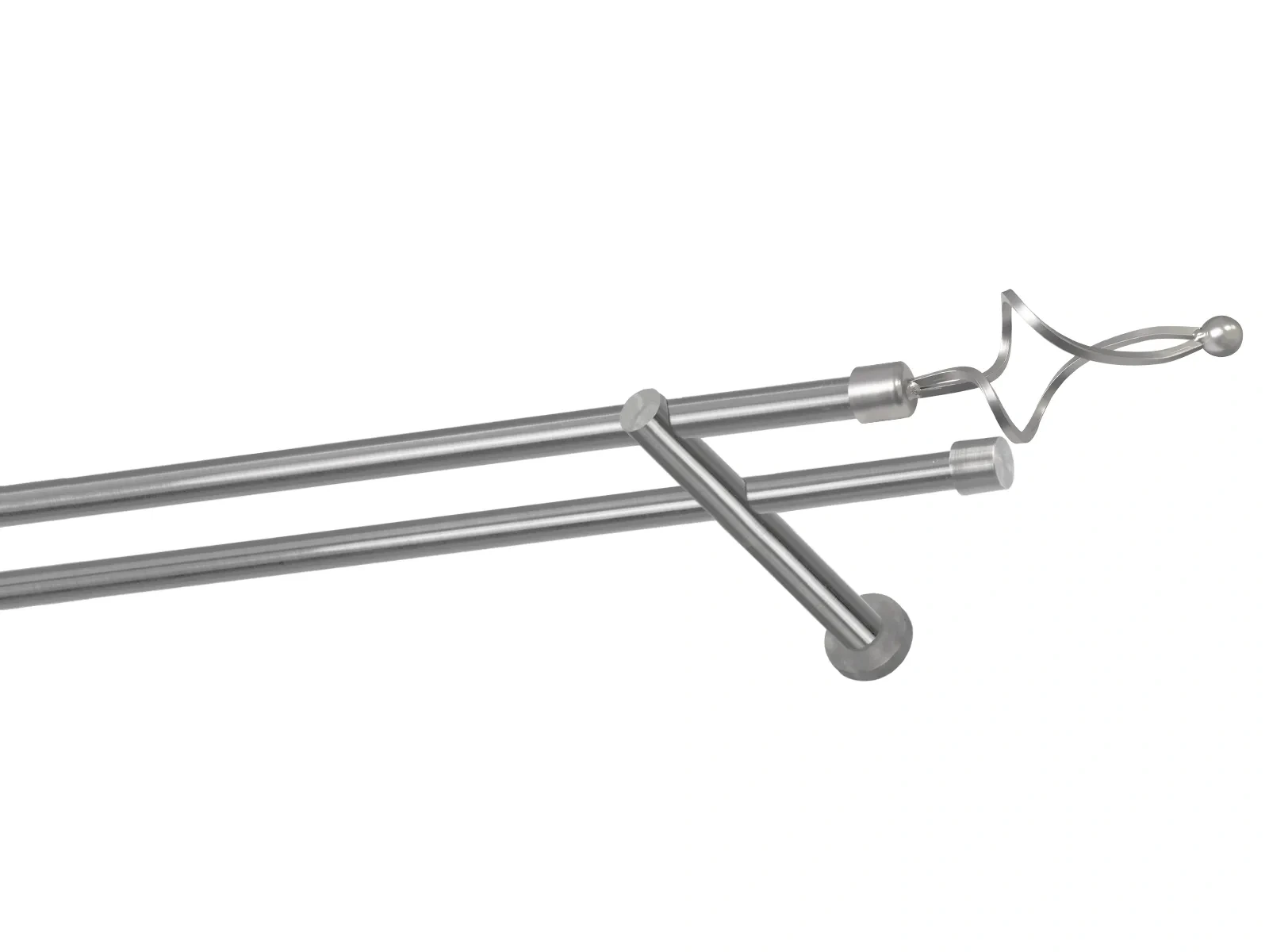 Dvouřadá garnýž s povrchovou úpravou - odstín satin (matné stříbro). Celokovová garnýž s kvalitní povrchovou úpravou - galvanické pokovování. Galvanické pokovování zabezpečuje vyšší povrchovou tvrdost, zvýšenú dolnost vůči poškrábání, hladký povrch. Dodávané jsou v kompletech.